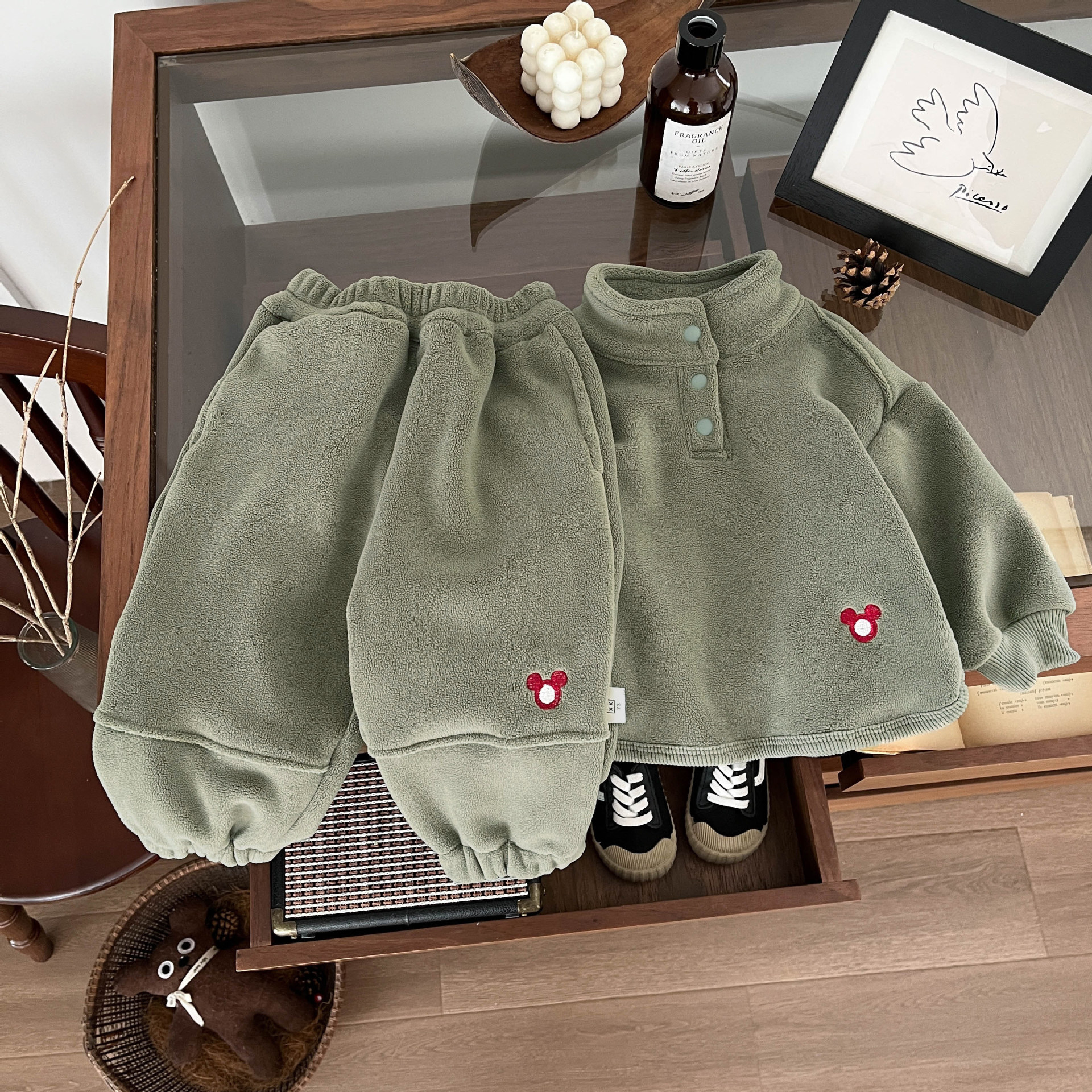 한국식 아기 겨울 올림픽 곡물 벨벳 세트 잘 생긴 소년의 스포츠 땀 바지 아기 따뜻한 유행 투피스 세트