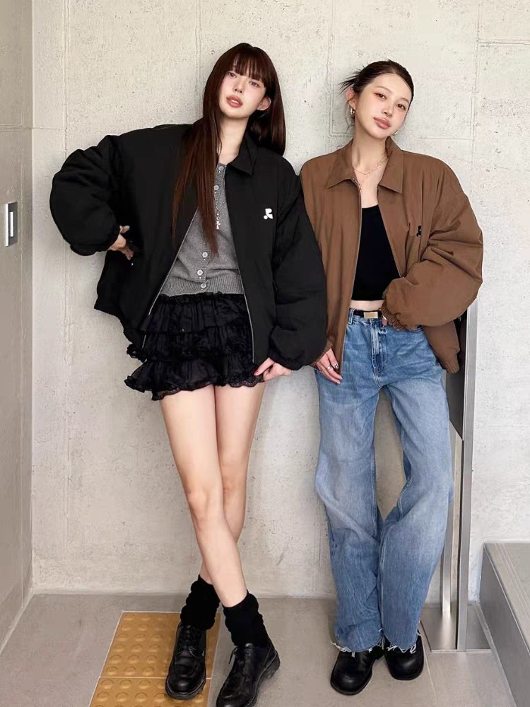 반품 및 교환 불가 2024 겨울 신상 한국 동대문 루즈핏 캐주얼 슬림핏 라펠 지퍼 재킷 여성용스토어 가기