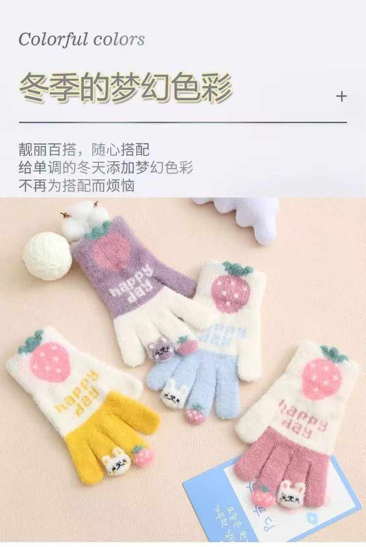 어린이 가을과 겨울 만화 장갑 소녀 기모 두꺼운 따뜻한 손가락 딸기 니트 감기 방지 다섯 손가락 장갑스토어 가기
