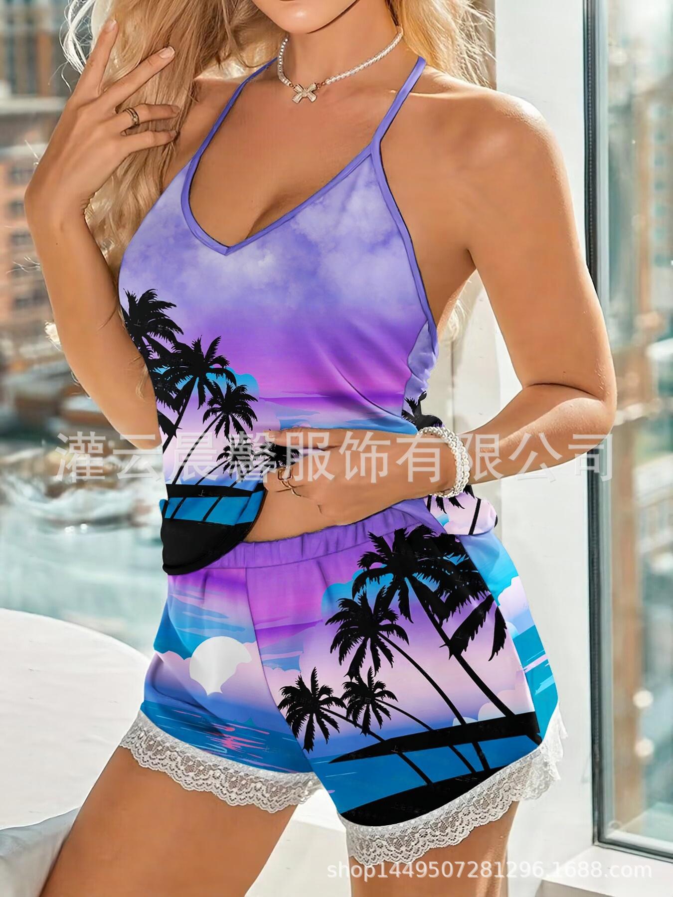 국경 간 유럽과 미국의 홈 의류 사계절 새로운 캐주얼 파자마 여성 밀크 실크 패브릭 조끼 민소매 반바지 세트스토어 가기