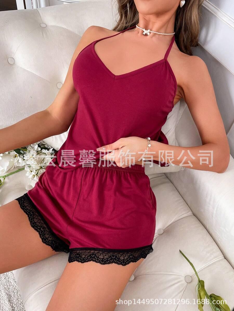 국경 간 유럽과 미국의 홈 의류 사계절 새로운 캐주얼 파자마 여성 밀크 실크 패브릭 조끼 민소매 반바지 세트