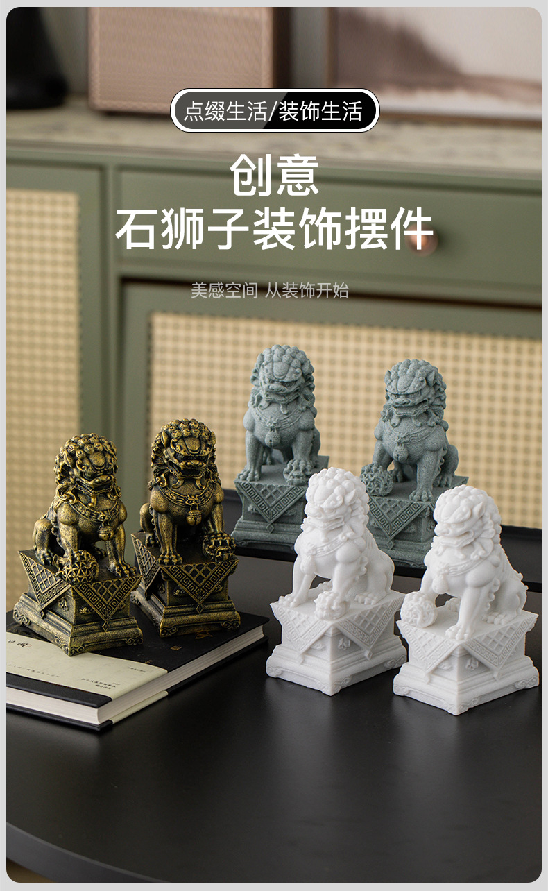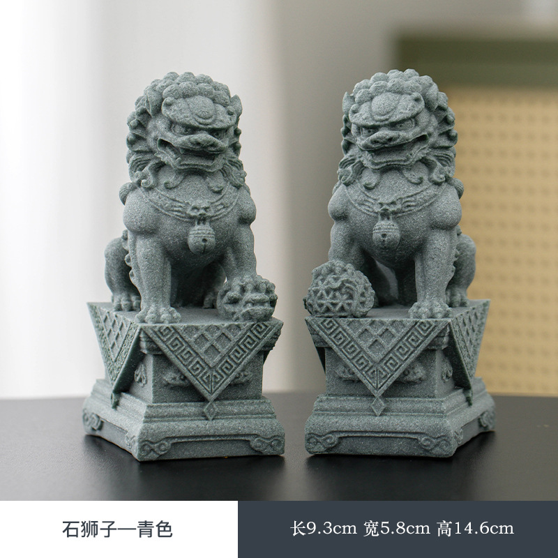 중국풍 청색 사암 사자 조각품 한쌍, 어항 장식, 행운의 동물, 책상, 가정, 거실 장식품, 수제스토어 가기