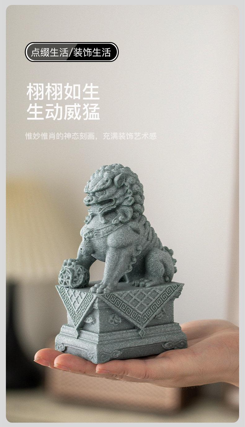 중국풍 청색 사암 사자 조각품 한쌍, 어항 장식, 행운의 동물, 책상, 가정, 거실 장식품, 수제