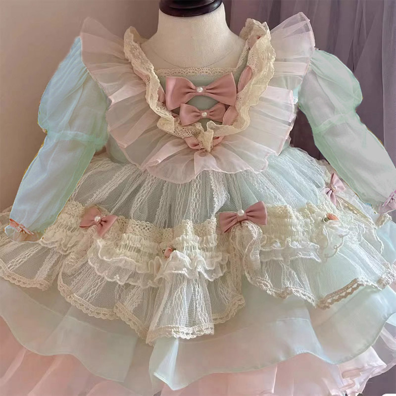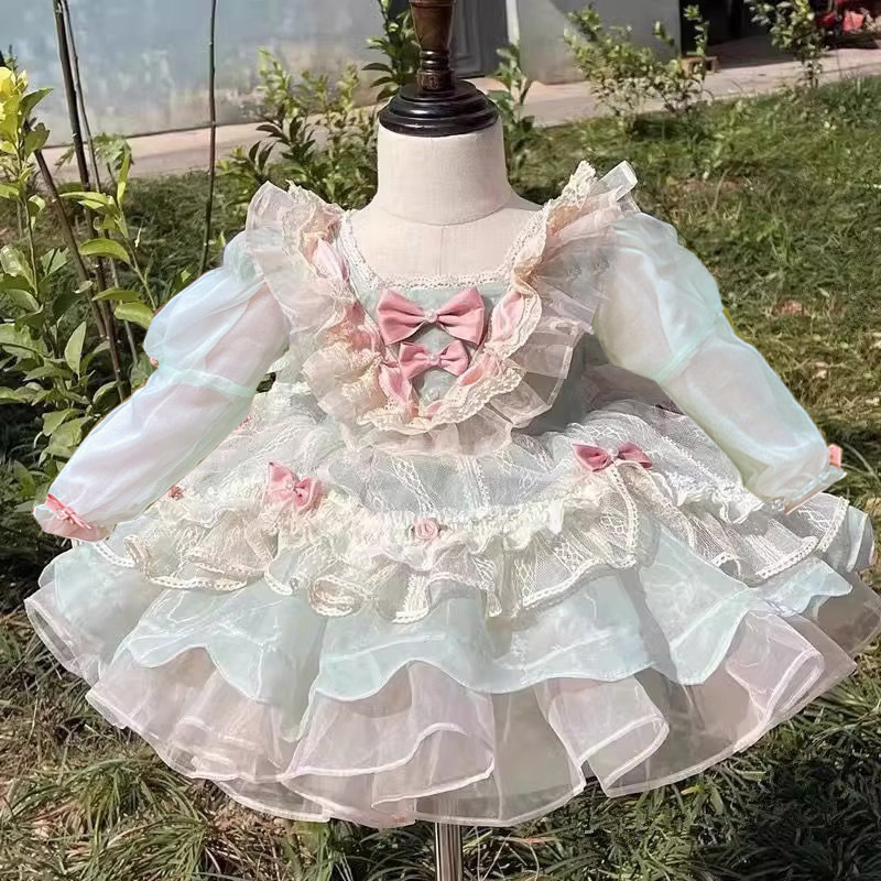봄과 가을 새로운 소녀 로리타 공주 원피스 큰 아이 아기 1 년 생일 파티 원피스 지방 원피스