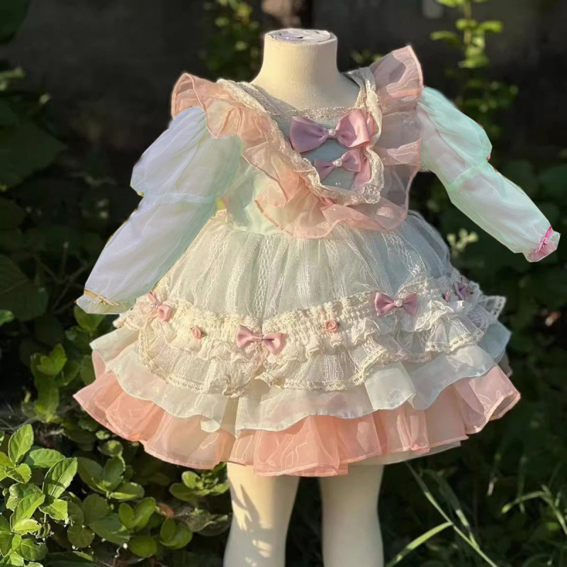 봄과 가을 새로운 소녀 로리타 공주 원피스 큰 아이 아기 1 년 생일 파티 원피스 지방 원피스스토어 가기