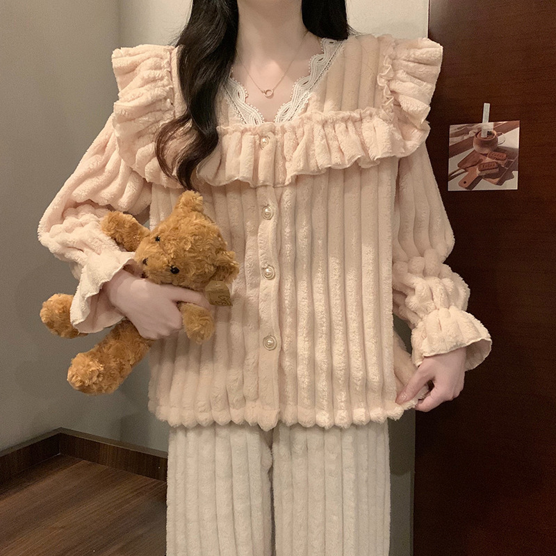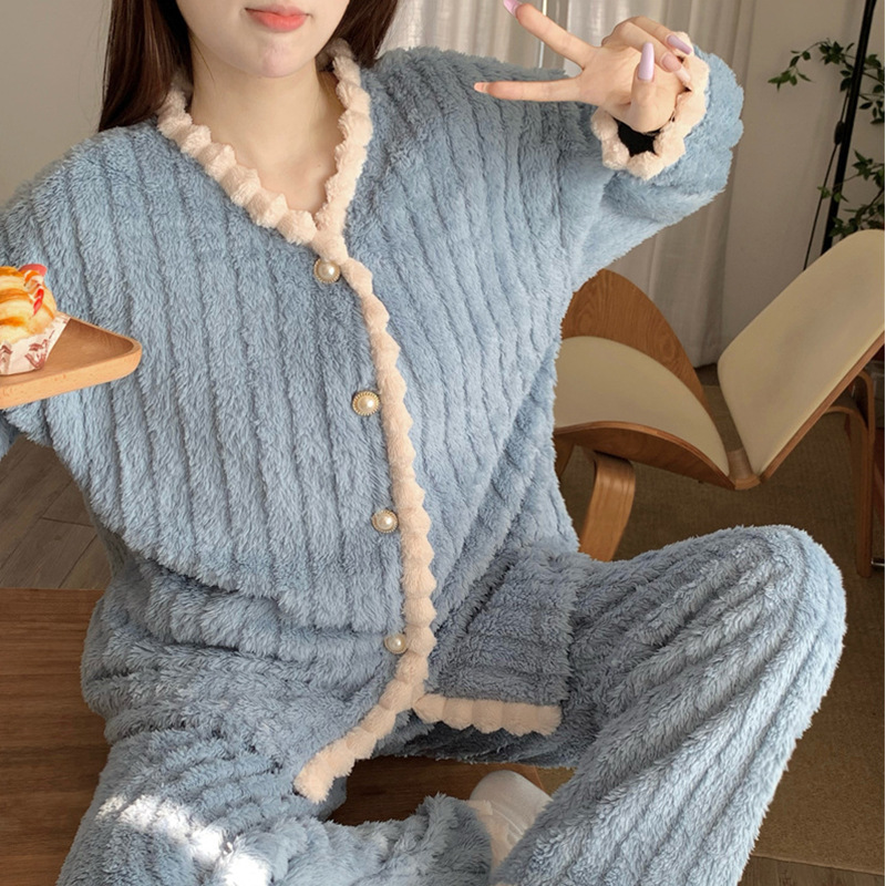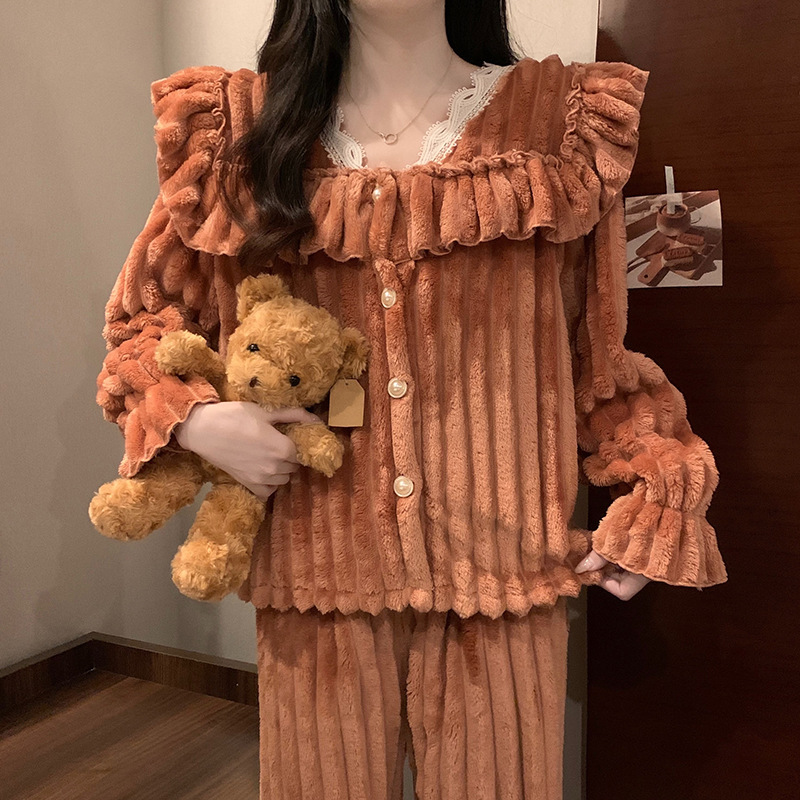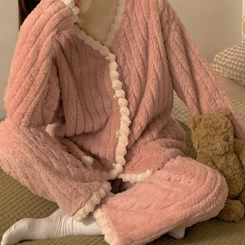 2024 새로운 봉제 요정 샤넬 파자마 긴 소매 홈 의류 세트 의상 올 매치 하이 엔드 여성