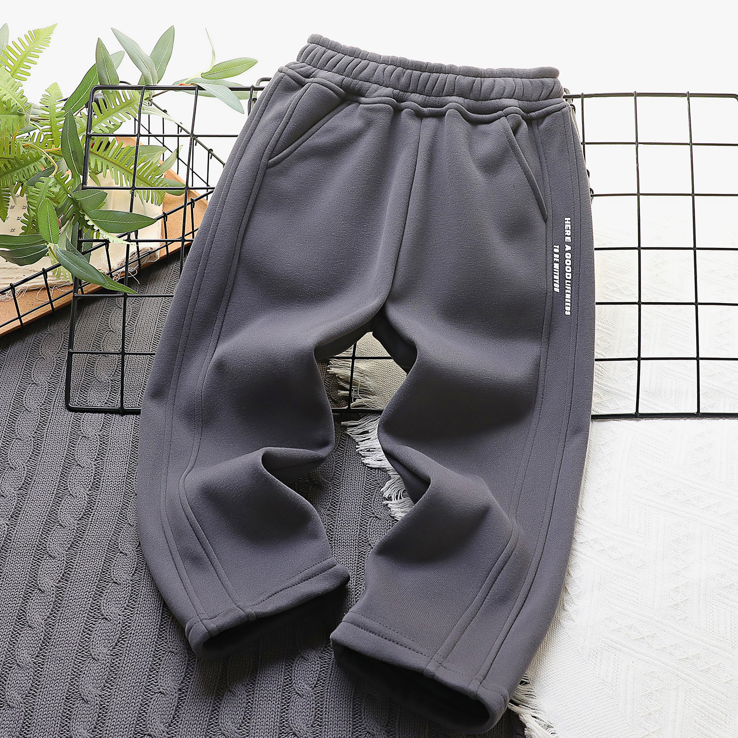 어린이 기모 플랫 바지 소년 겨울 스포츠 바지 2024 겨울 새로운 대형 어린이 캐주얼 바지 머리카락 세대