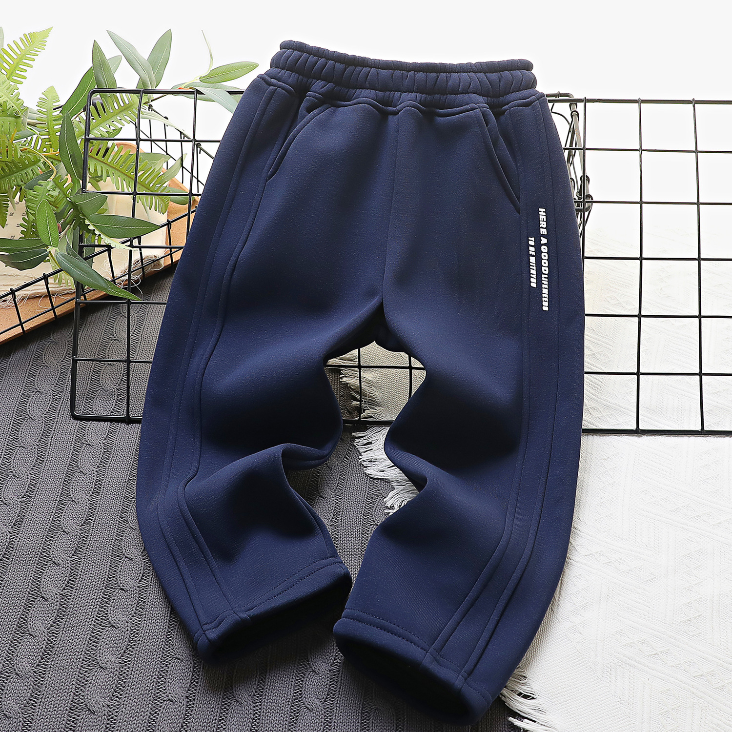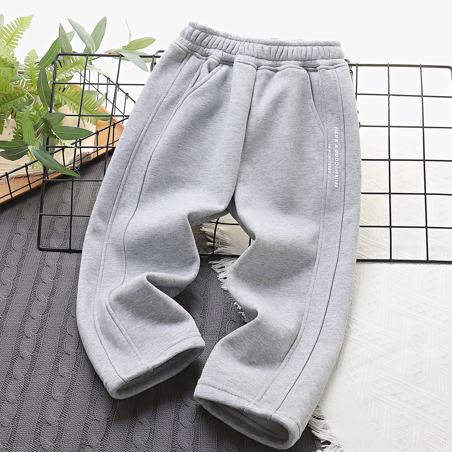 어린이 기모 플랫 바지 소년 겨울 스포츠 바지 2024 겨울 새로운 대형 어린이 캐주얼 바지 머리카락 세대스토어 가기
