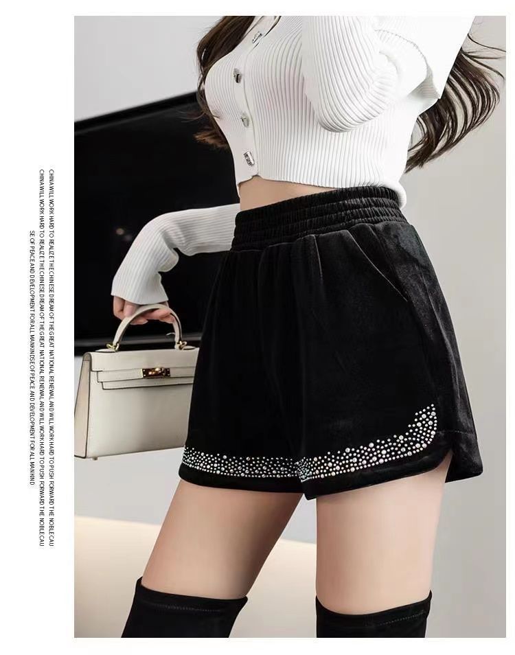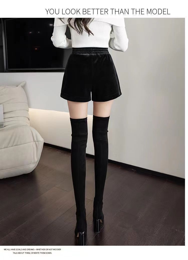 2024 새로운 도착 골드 벨벳 높은 허리 반바지 여자 가을 겨울 한국 스타일 얽히고 설킨 허리 넓은 다리 바지 두꺼운 올매치 부츠 바지스토어 가기