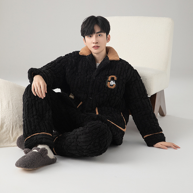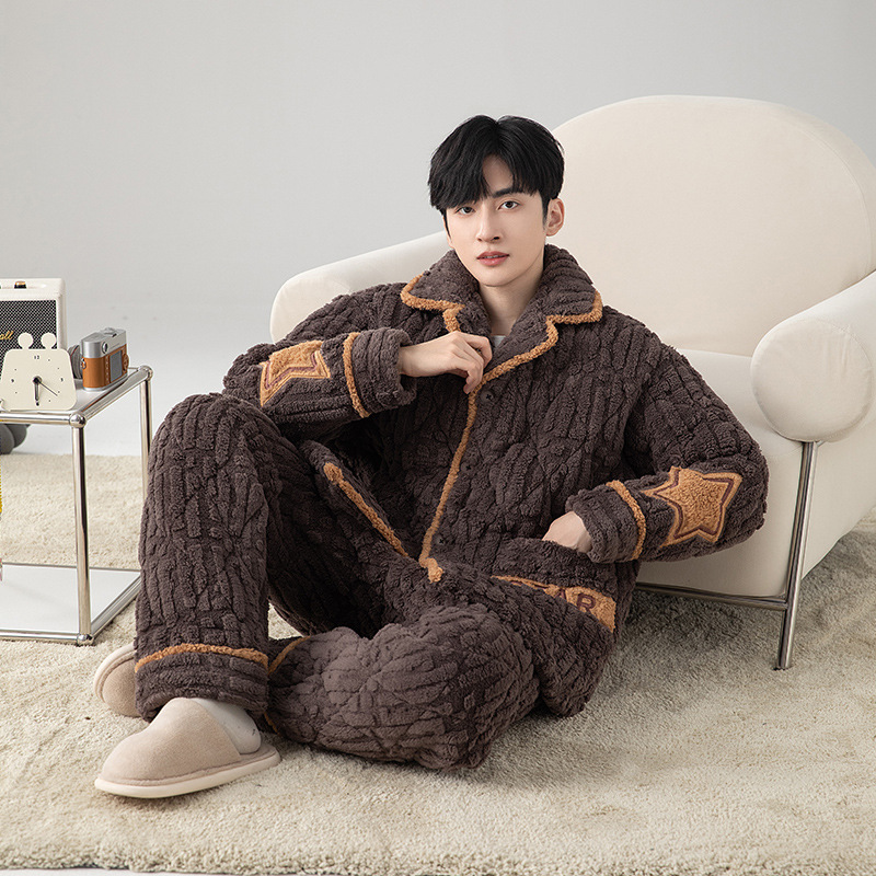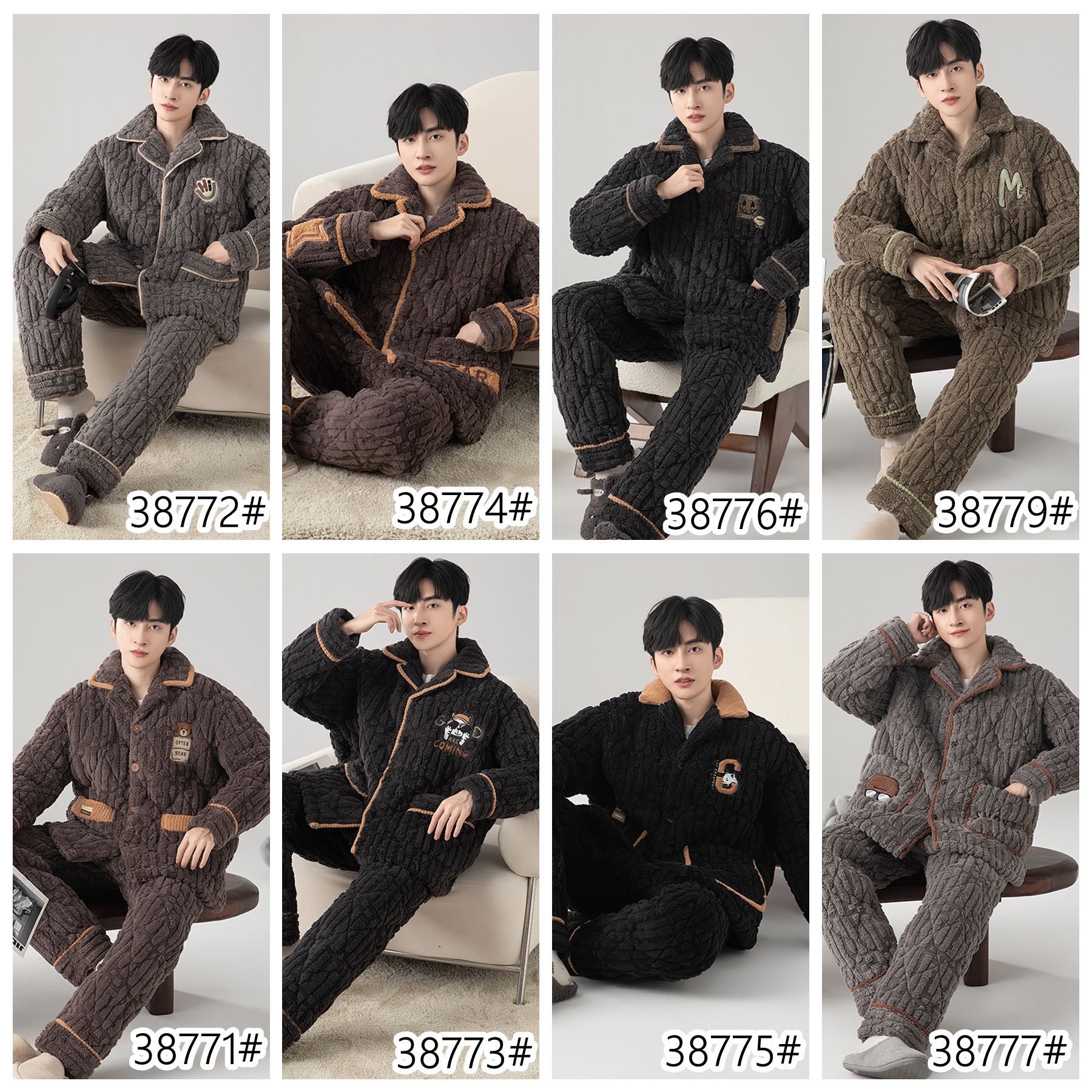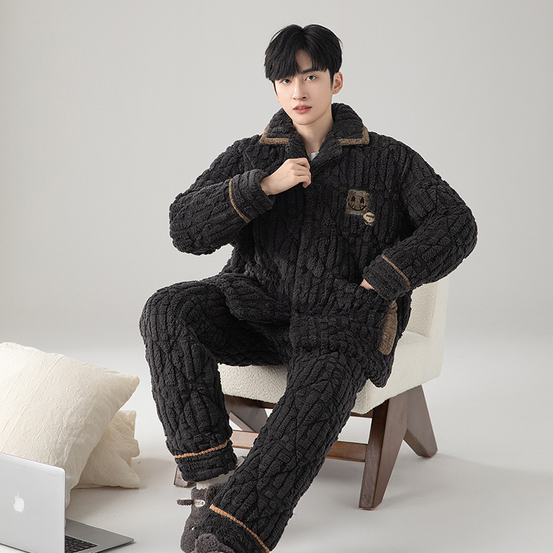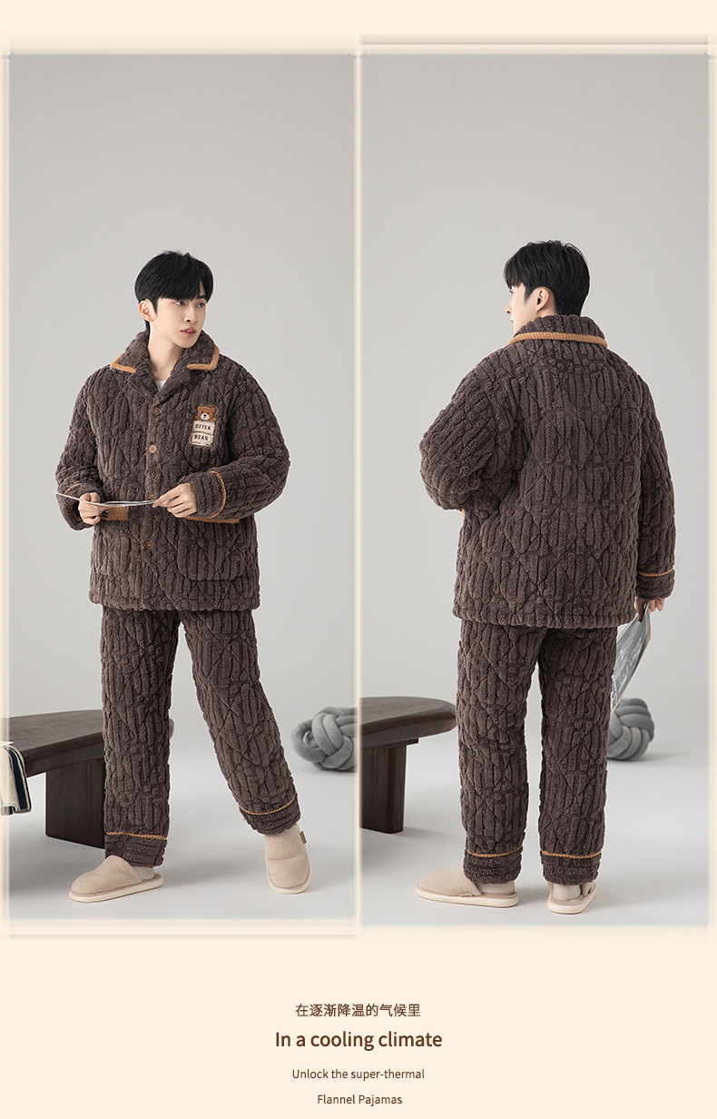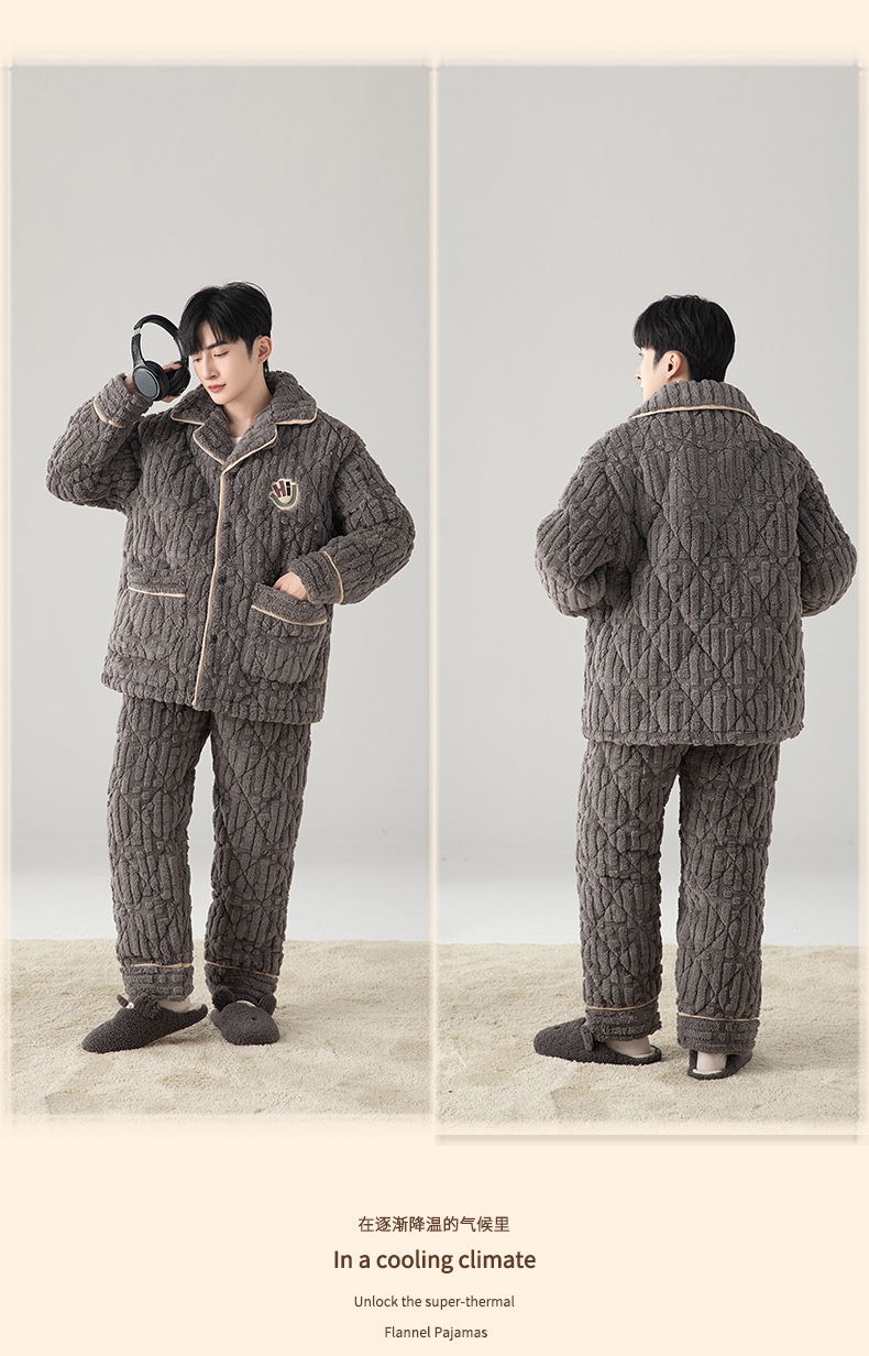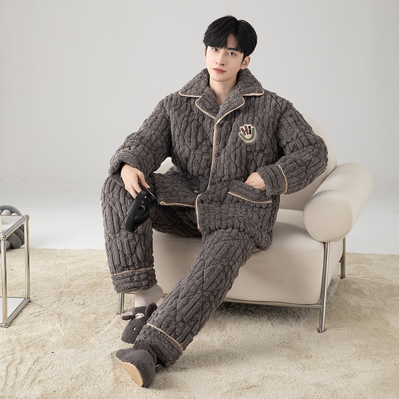 산호 양털 남성 퀼트 파자마 겨울 3 층 따뜻한 플러스 사이즈 간단한 캐주얼 남성 홈 의류 2 피스 세트