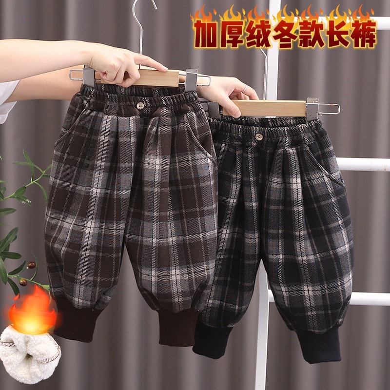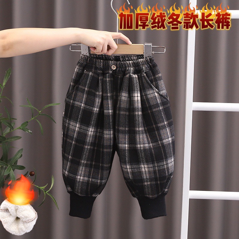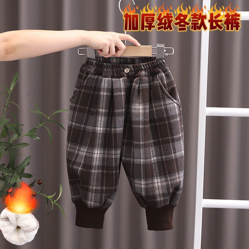 무료 배송 Yikids 벨벳 바지 겨울 두꺼운 벨벳 격자 무늬 바지 아기 따뜻한 바지 겨울 캐주얼 바지