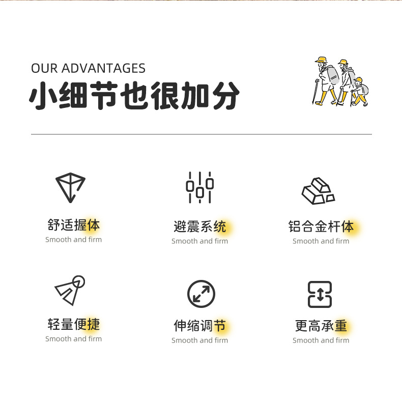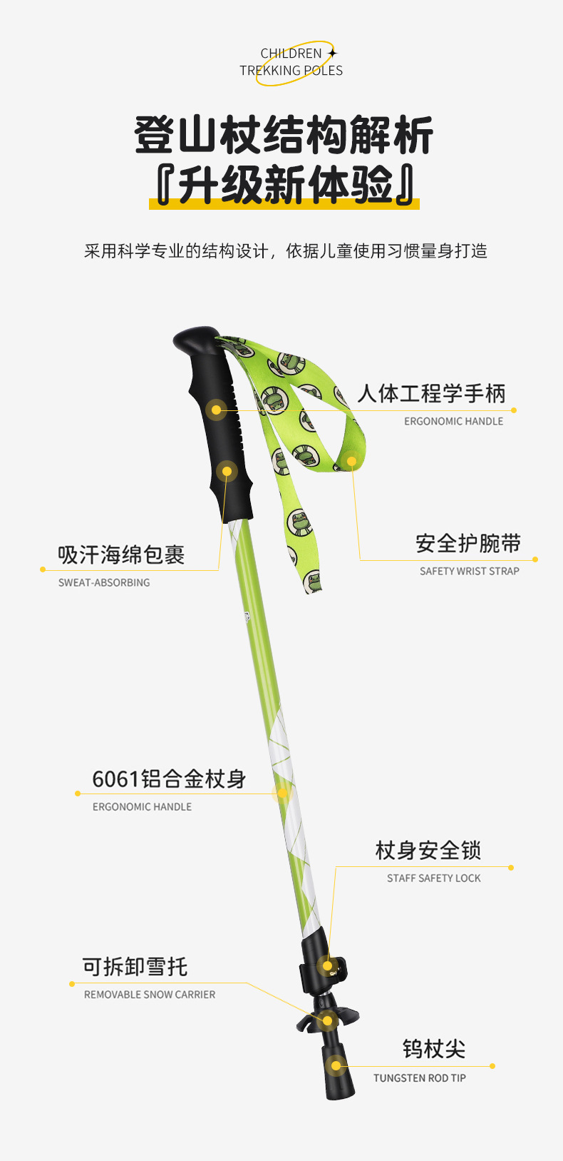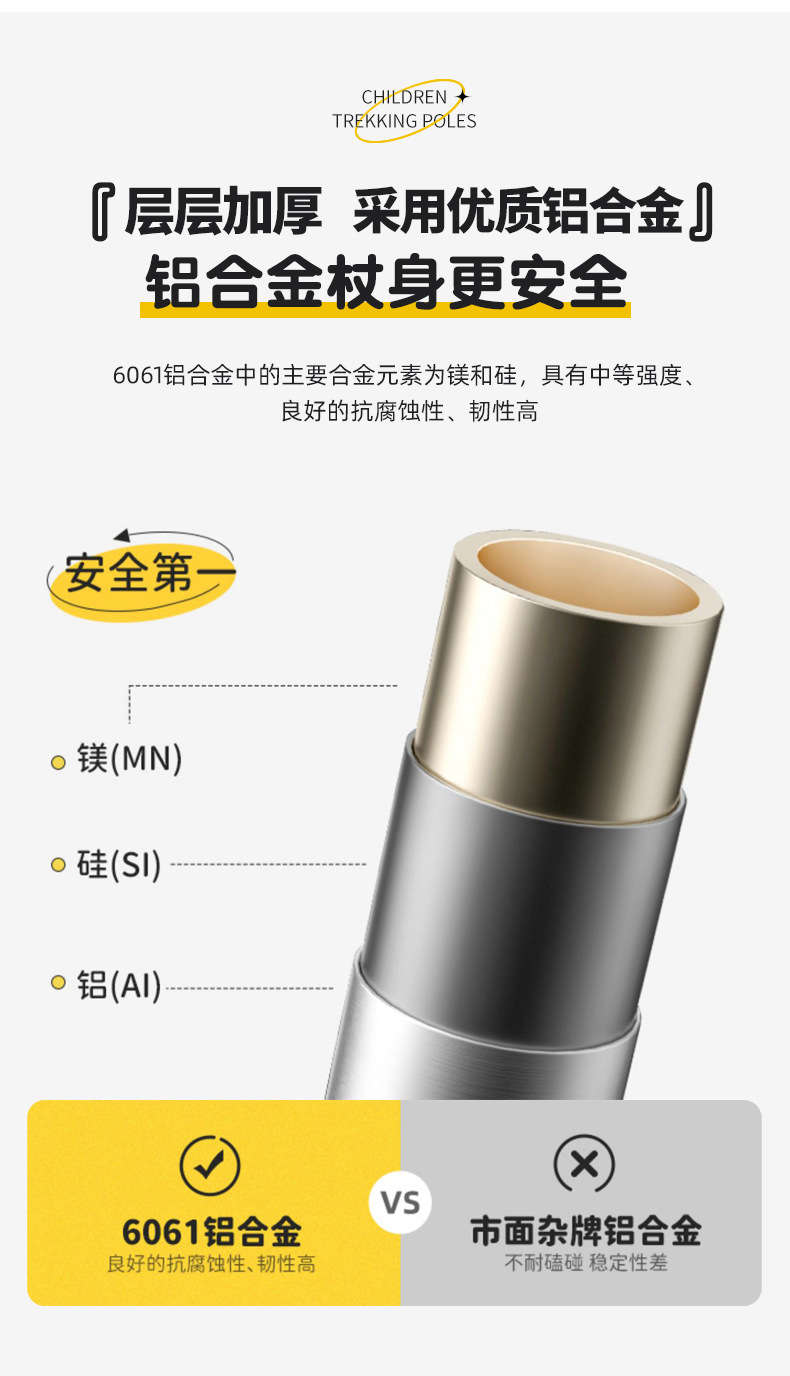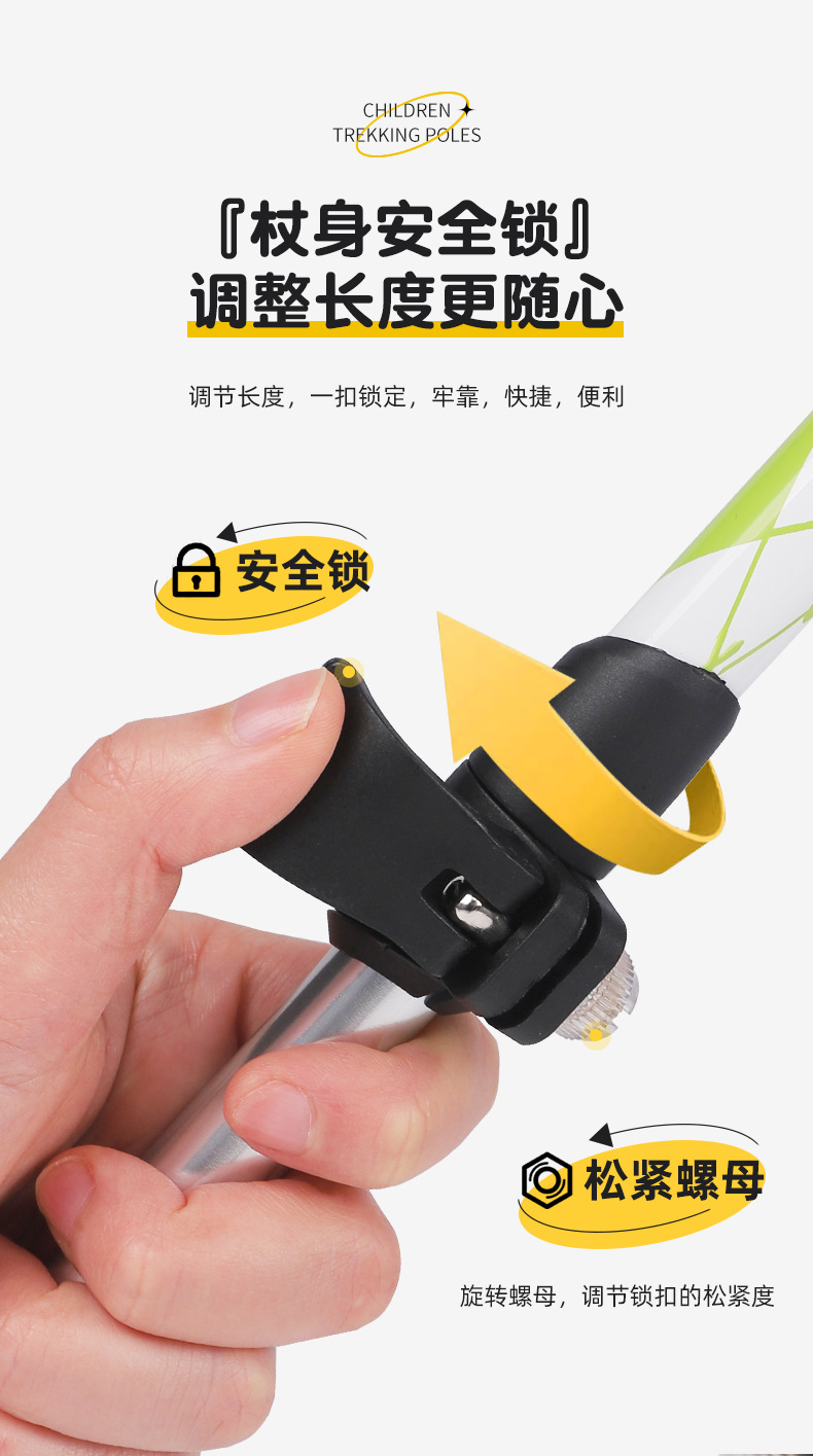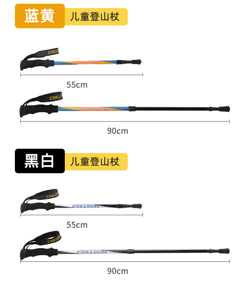 【공장】어린이용 알루미늄 합금 등산 스틱, 신축성 미끄럼 방지 지팡이, 다기능 하이킹 스틱, 도매 및 직배송스토어 가기