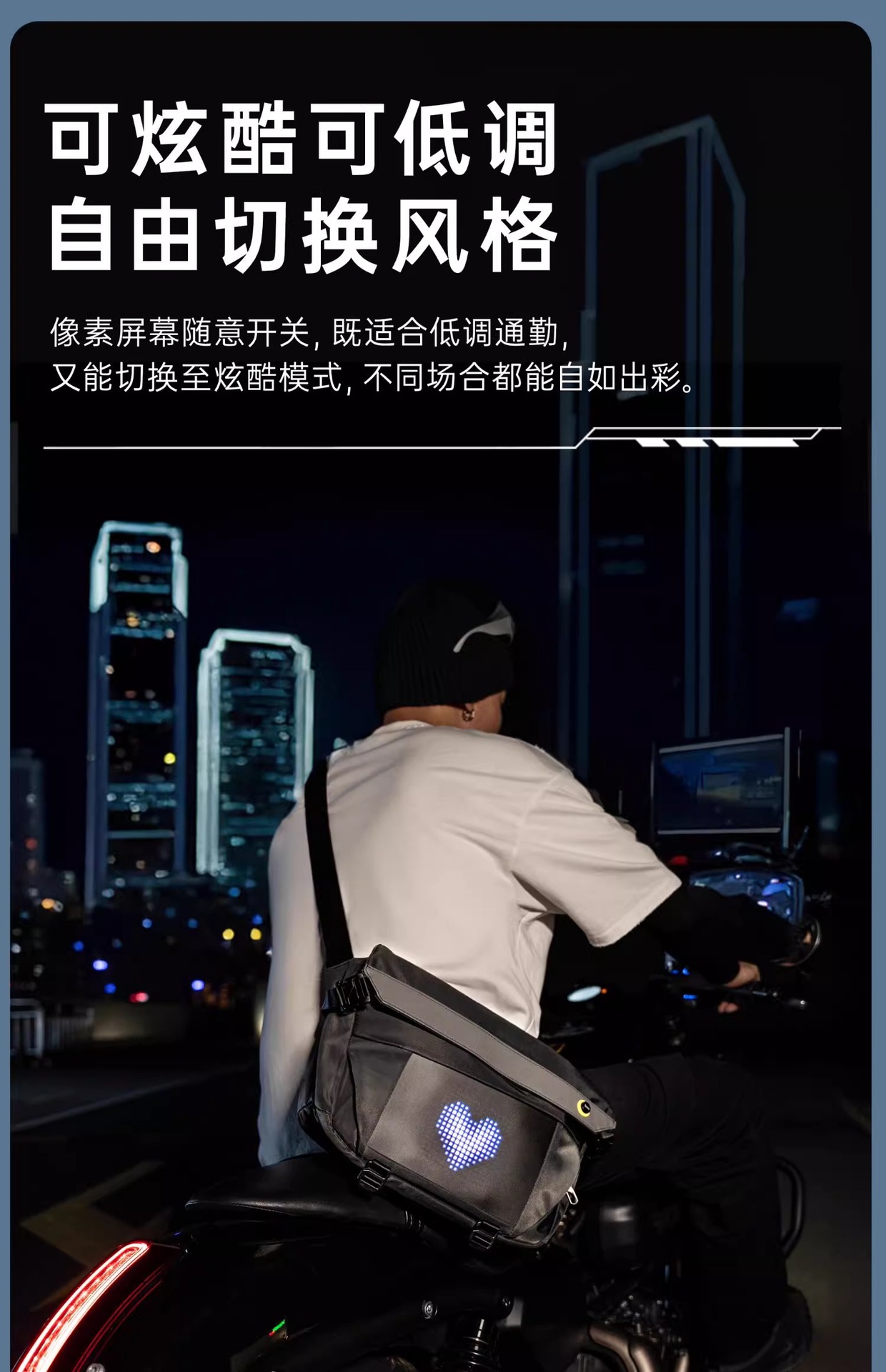 Divoom Point 시청각 메신저 백 남성용 블랙 숄더 백 승마 배낭 스크린 메신저 백 Led 가슴 가방스토어 가기