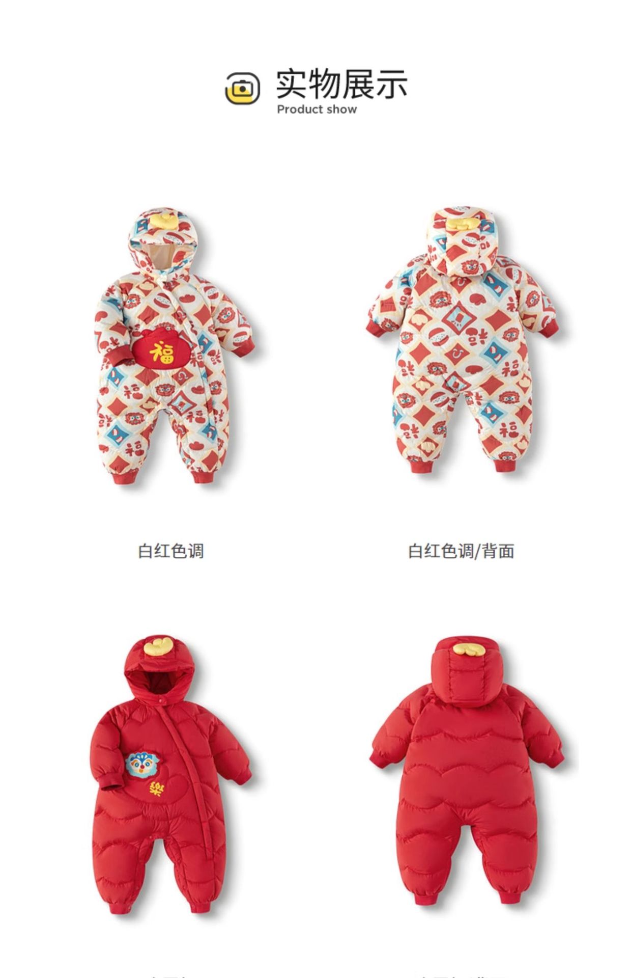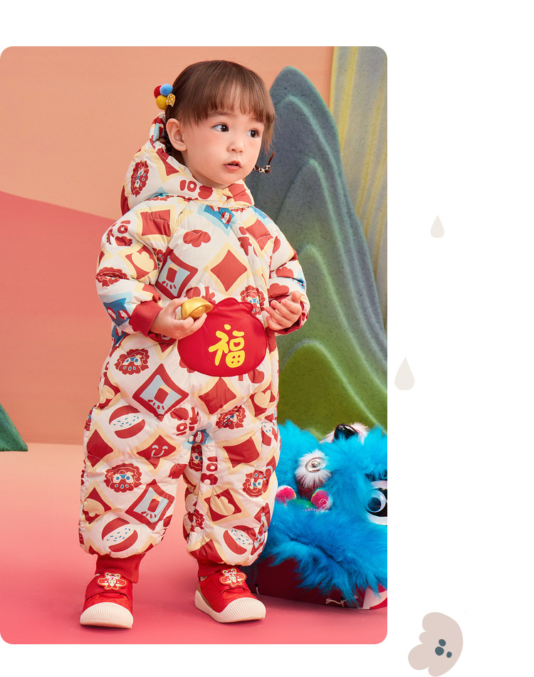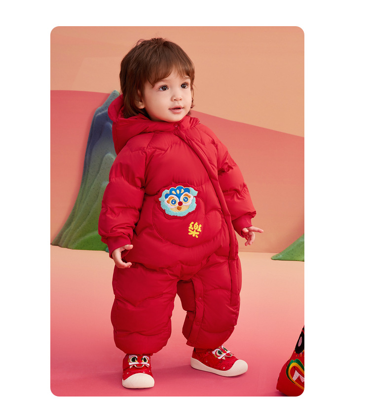 베이비 다운 재킷, 오리 다운 점프 슈트, 새해 복 많이 받으세요 드레스, 영유아 겨울 따뜻하고 세련된 중국 빨간색 외출복스토어 가기
