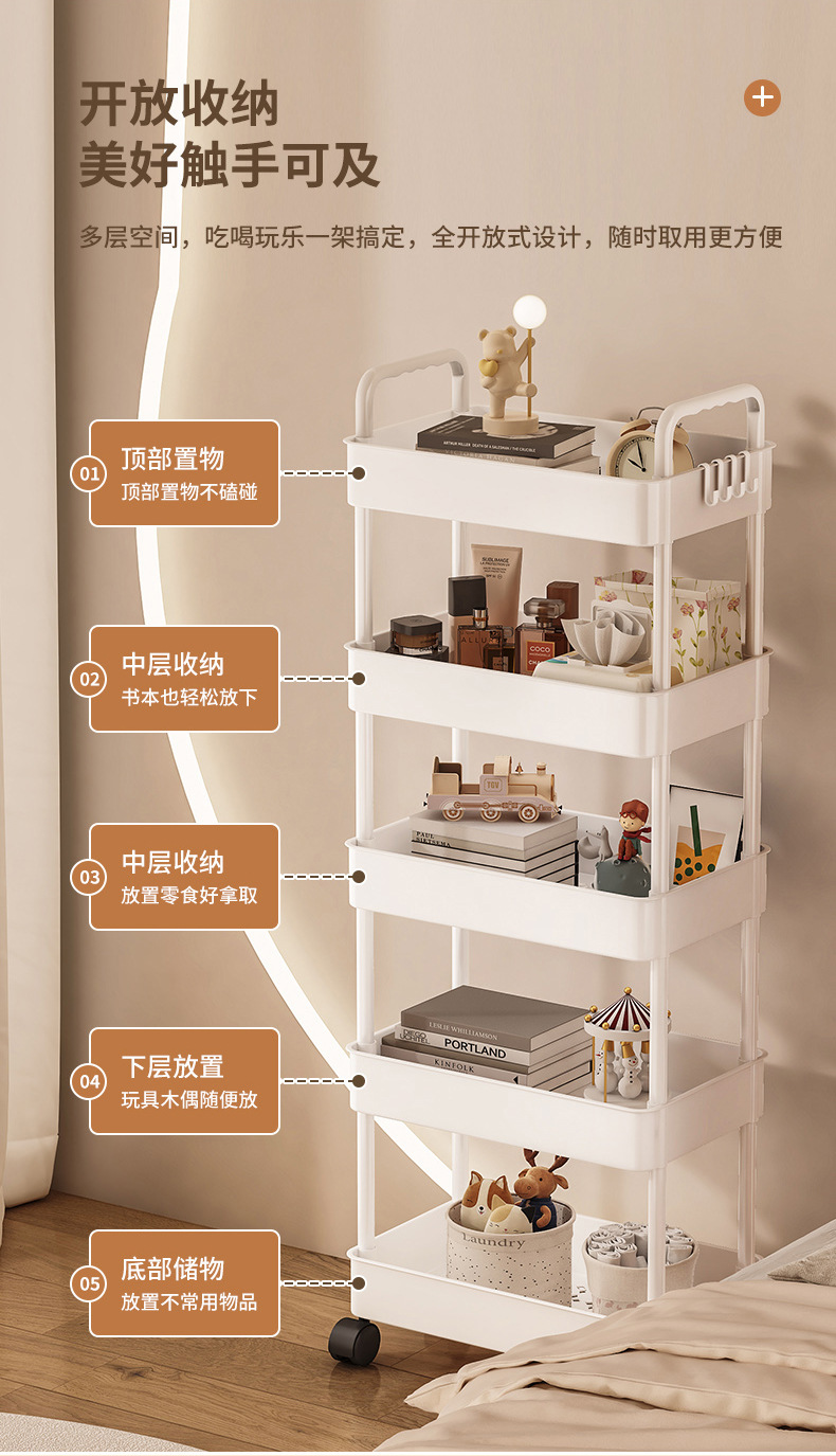 가정용 기숙사 책상 정리대 가정용 다층 주방 수납 선반 바닥형 수납 선반 수납대 소형 카트