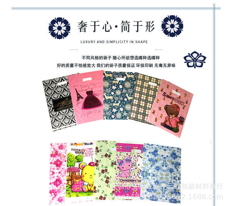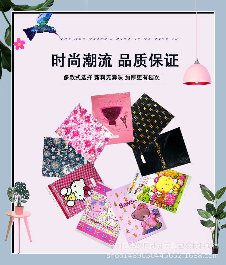 고급 고품질 플라스틱 핸드백 두꺼운 선물 가방 작은 선물 부티크 평면 PE 쇼핑백 의류 가방