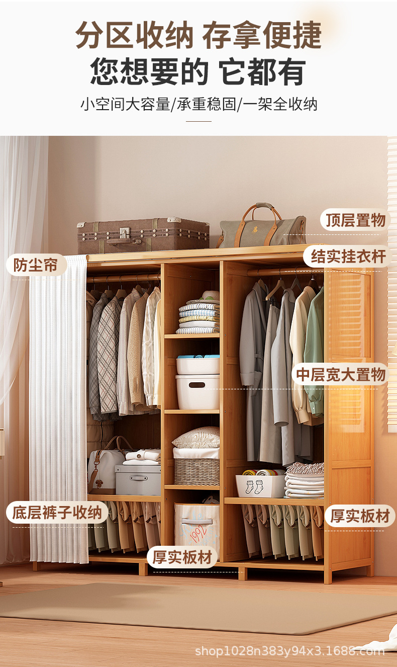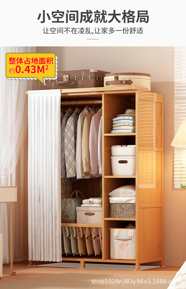 간단한 커튼 옷장 홈 침실 경제적 인 임대 방 작은 아파트 옷장 어린이 보관 캐비닛