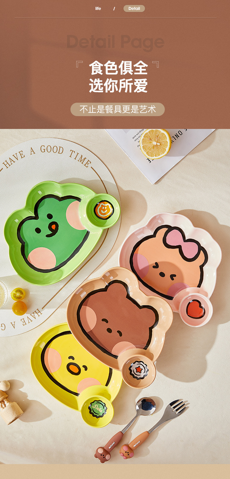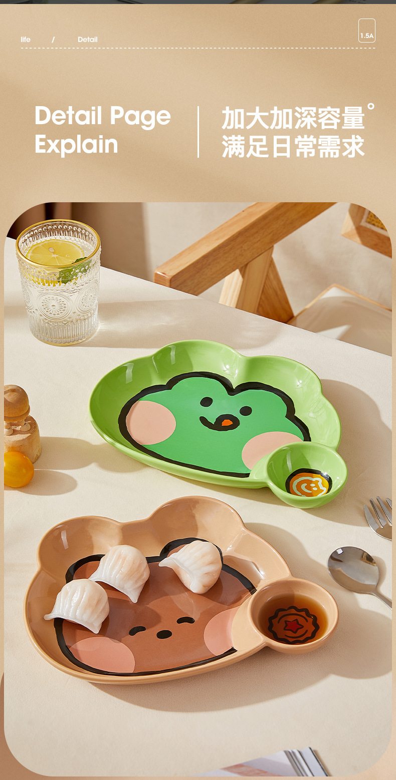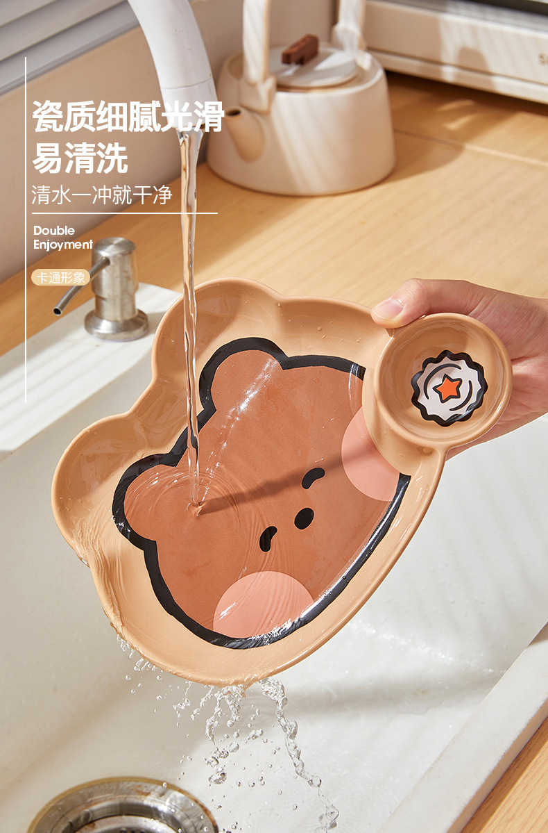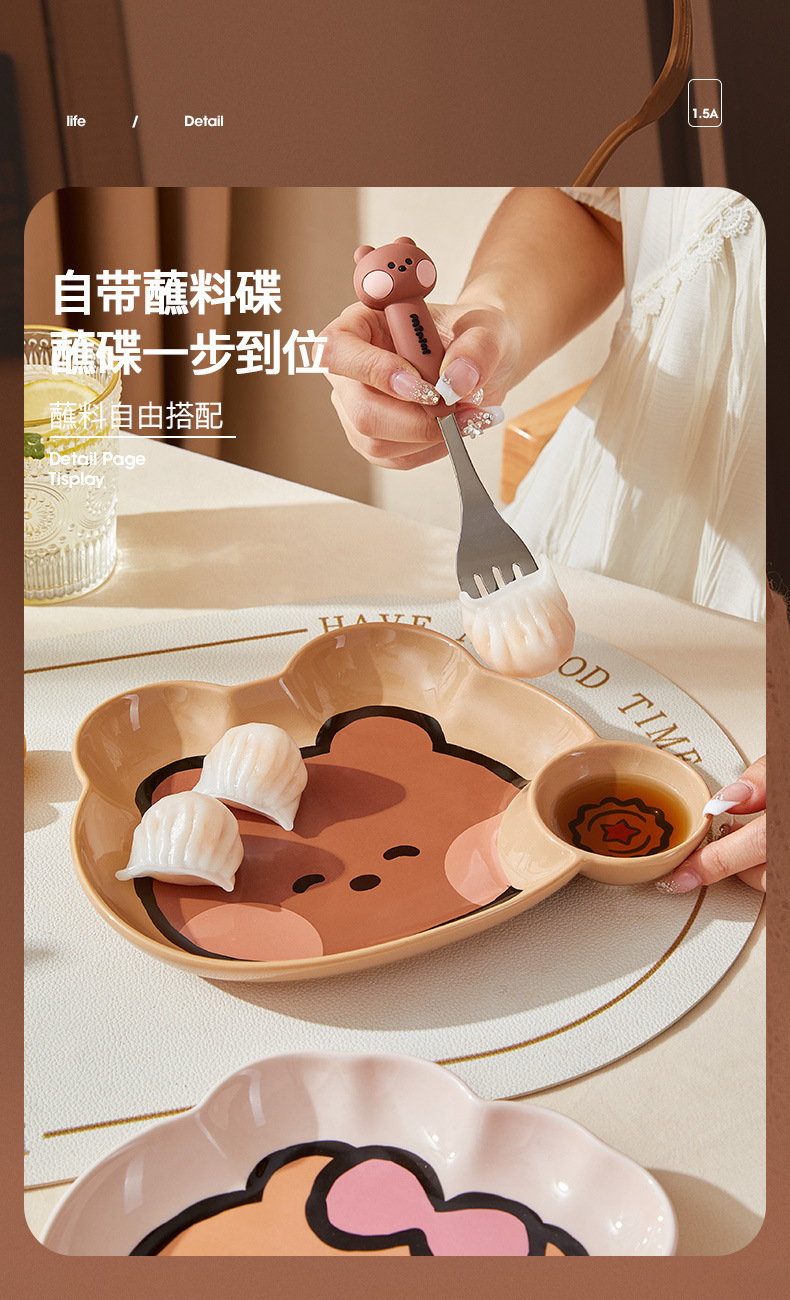 다크 브라운 베어 만두 플레이트 가정용 귀여운 플레이트 Ins 높은 뷰티 값 세라믹 플레이트 만화 창조적 인 접시 모델링 디너 플레이트
