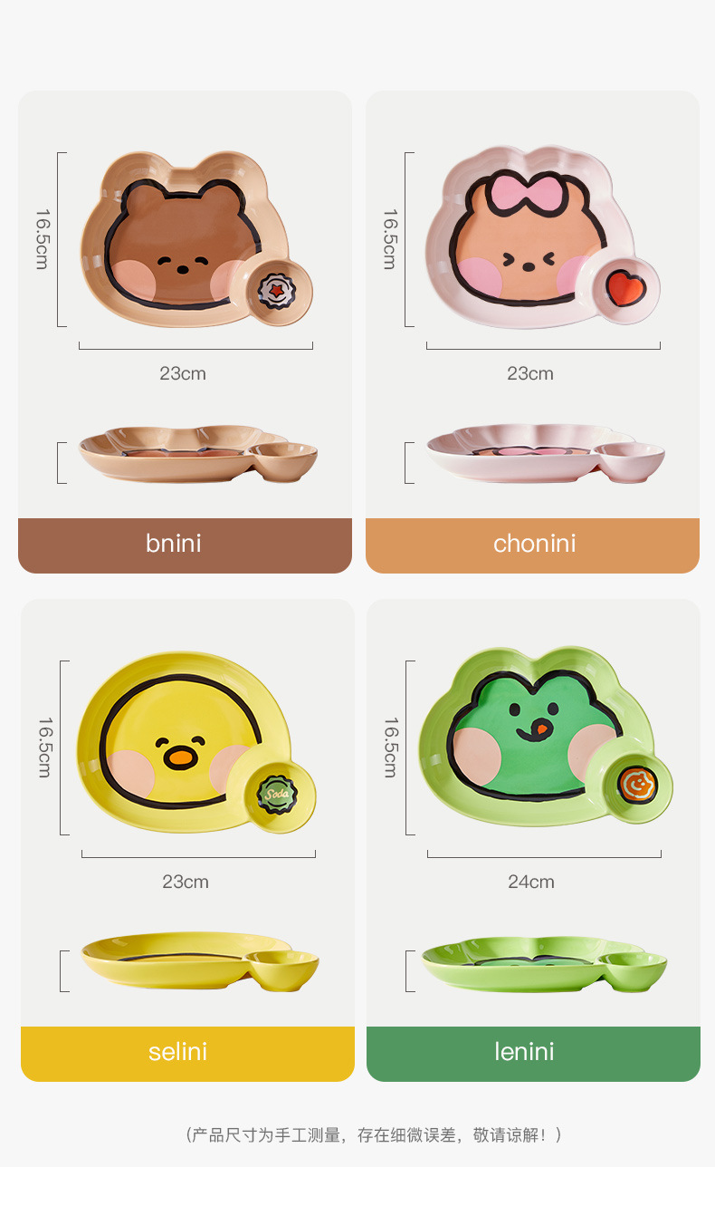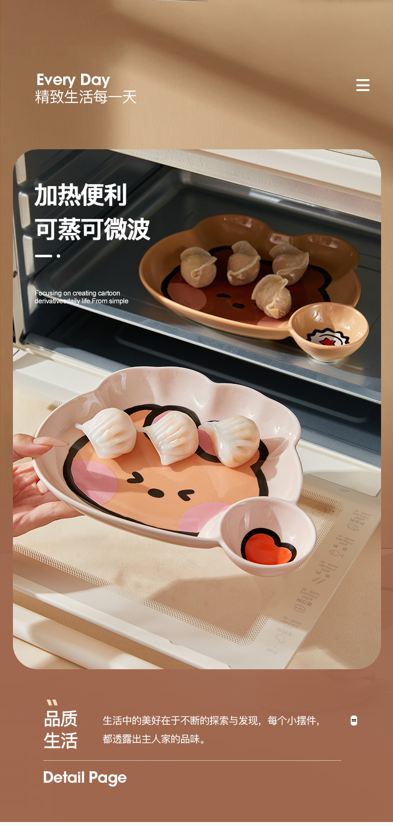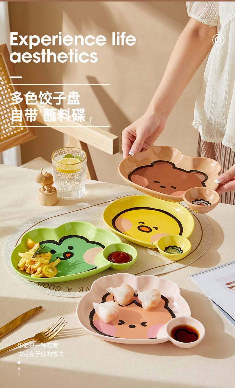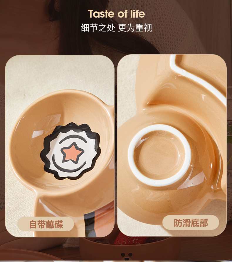 다크 브라운 베어 만두 플레이트 가정용 귀여운 플레이트 Ins 높은 뷰티 값 세라믹 플레이트 만화 창조적 인 접시 모델링 디너 플레이트