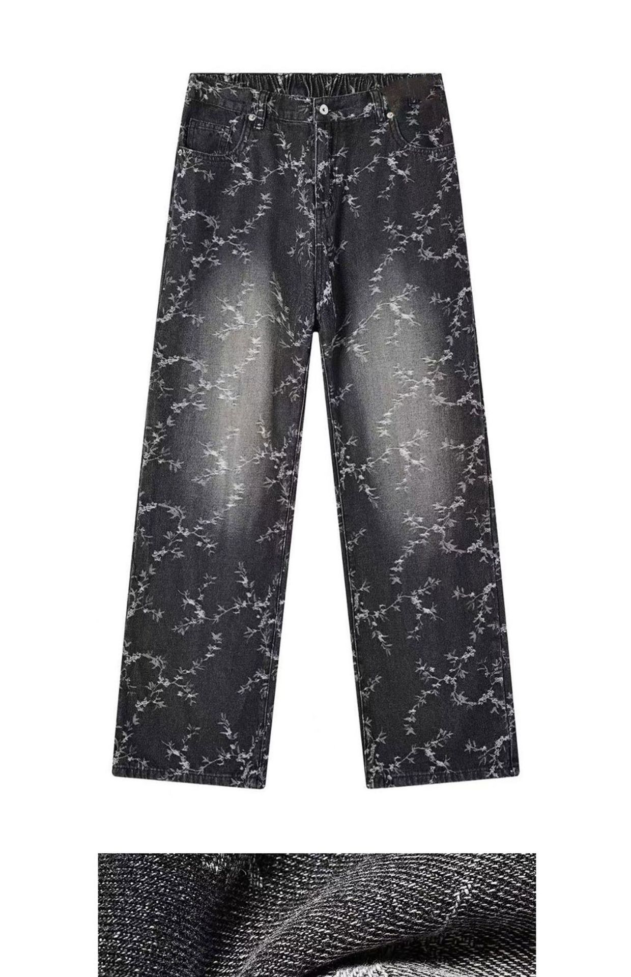 미국식 레트로 가시 자카드 청바지 남성 가을 및 겨울 틈새 디자인 센스 마이크로 라르 바지 스트레이트 슬림 핏 작업복 바지