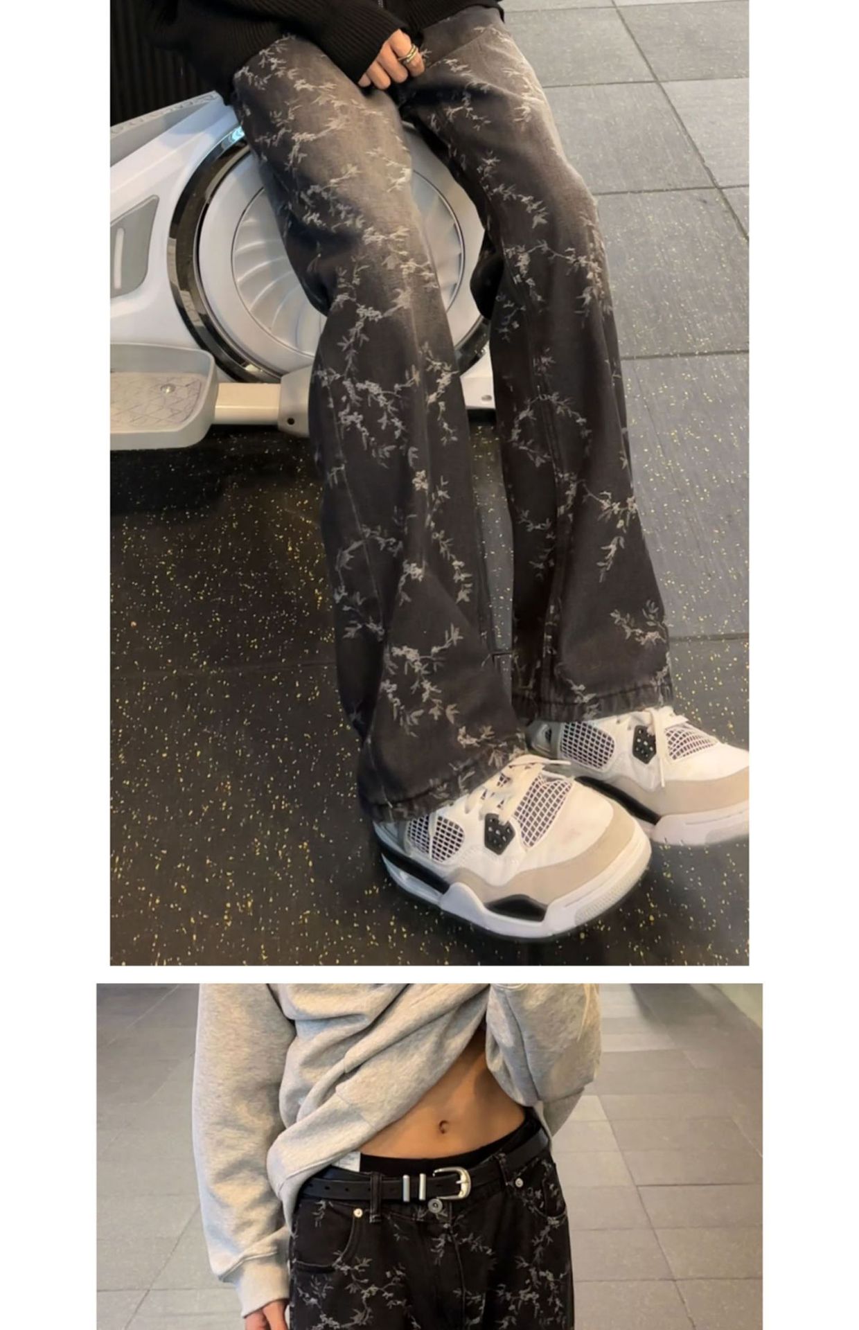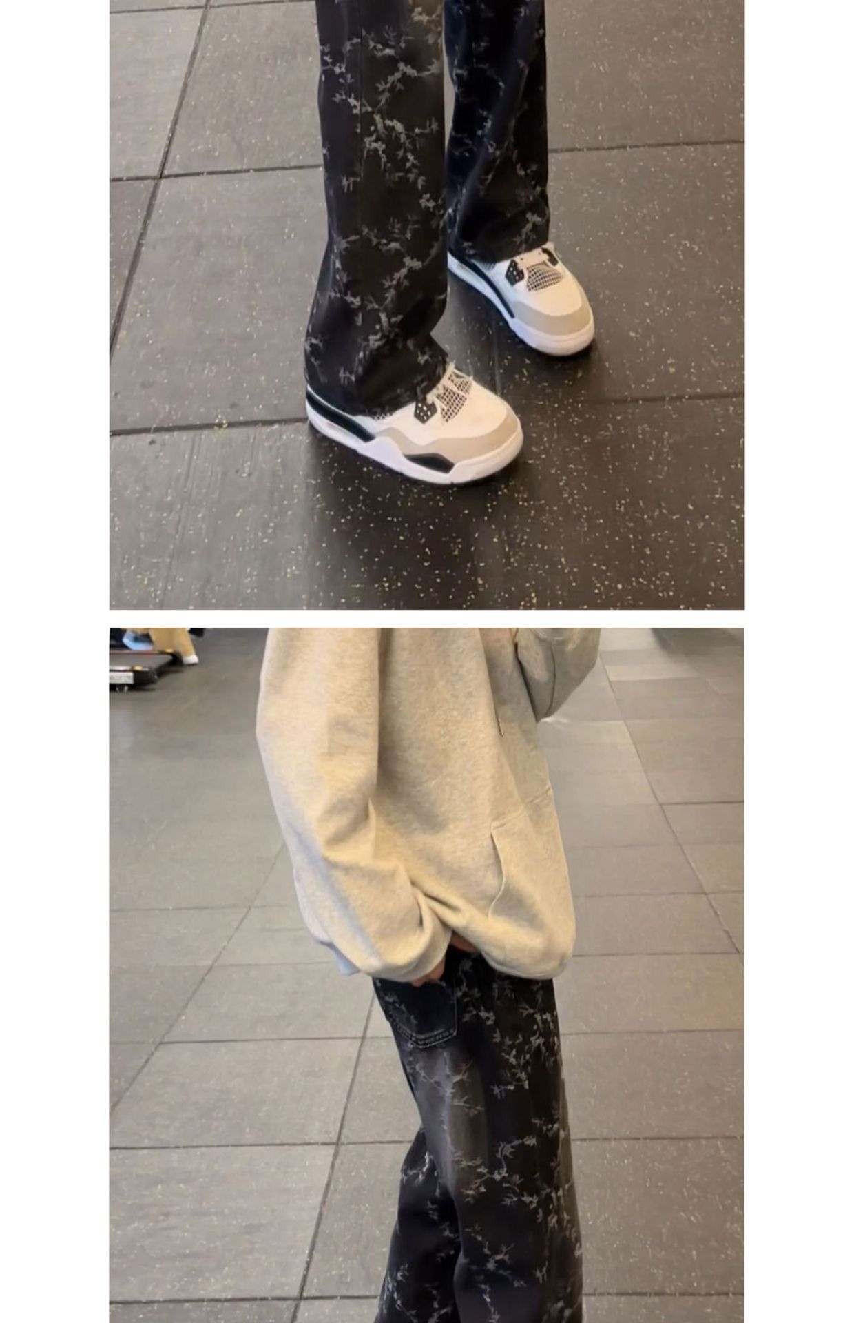 미국식 레트로 가시 자카드 청바지 남성 가을 및 겨울 틈새 디자인 센스 마이크로 라르 바지 스트레이트 슬림 핏 작업복 바지스토어 가기