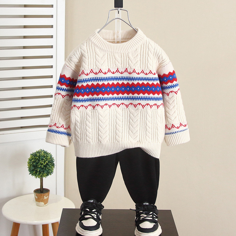 6695 소년 크루 넥 스웨터 2024 가을 및 겨울 새로운 어린이 니트 양모 탑 겨울 아기베이스 셔츠스토어 가기
