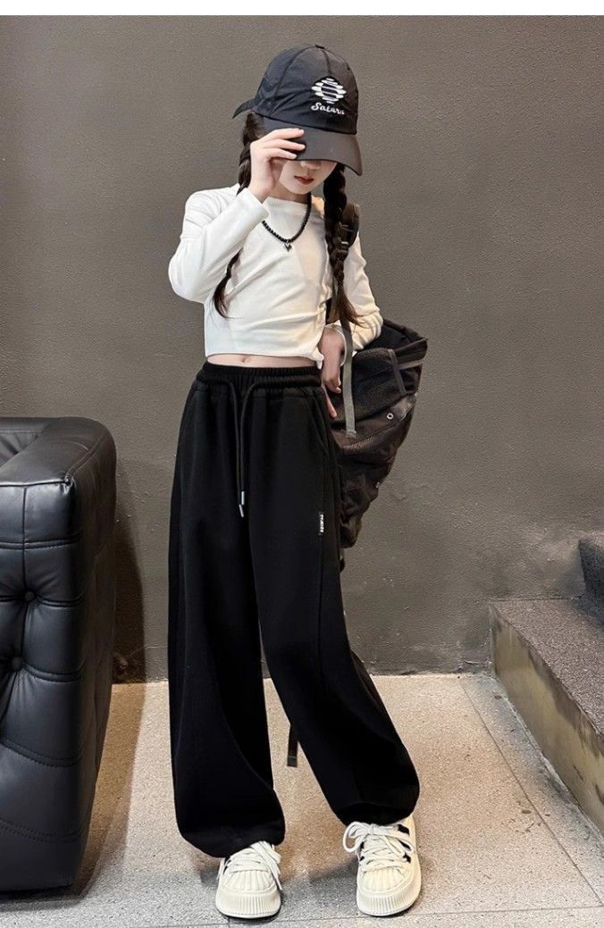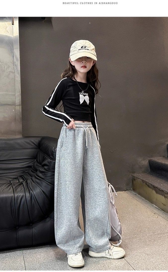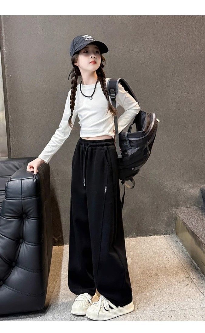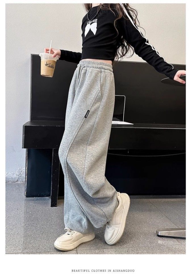 아동용 바나나 스웨트팬츠, 여아용 와이드 팬츠, 2025년 가을 새로운 한국 캐주얼 바지, 여아용 트렌디하고 쿨한 의상스토어 가기