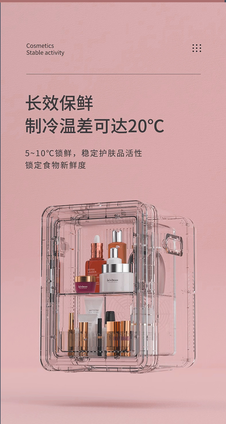 메이크업 거울 스킨 케어 제품 음료 차갑고 따뜻한 상자 다기능 미니 열 보존 상자로 빛을 가진 자동차 미용 메이크업 냉장고 차스토어 가기