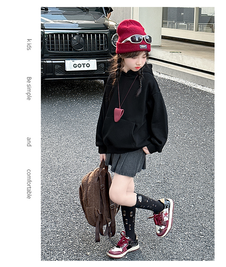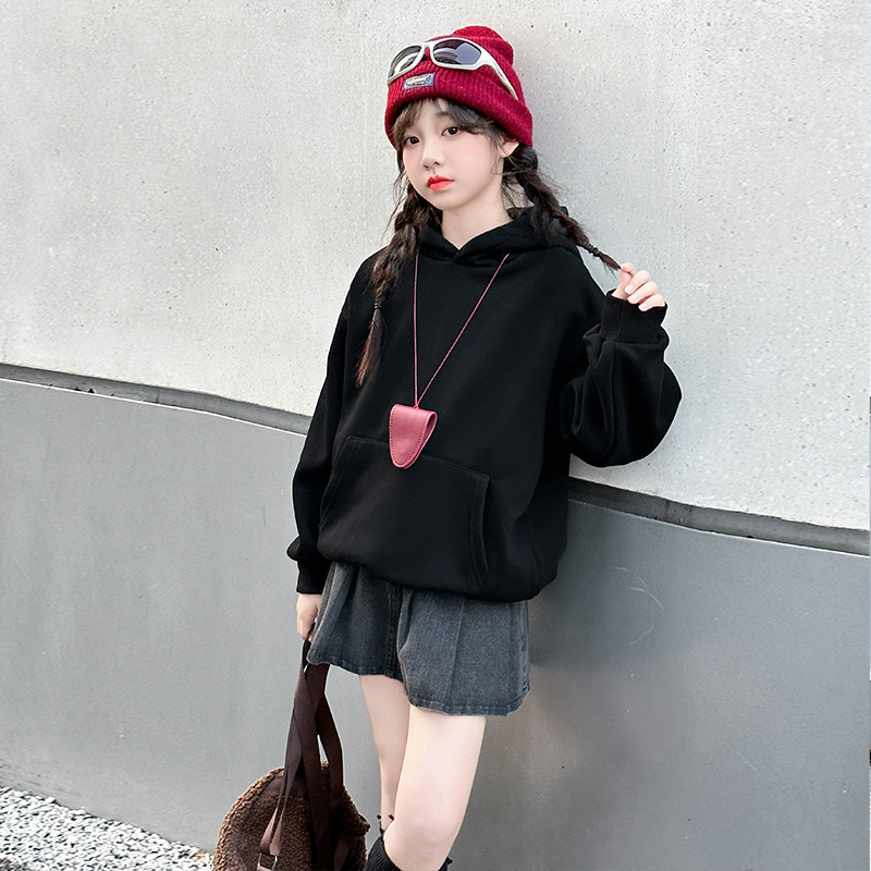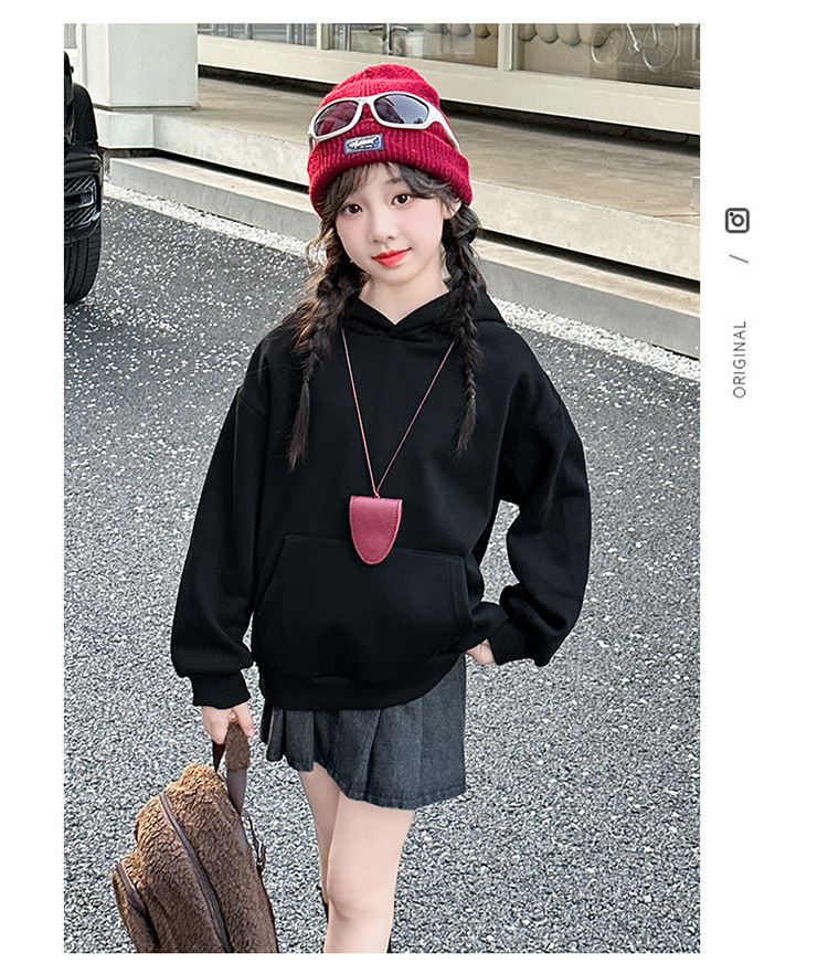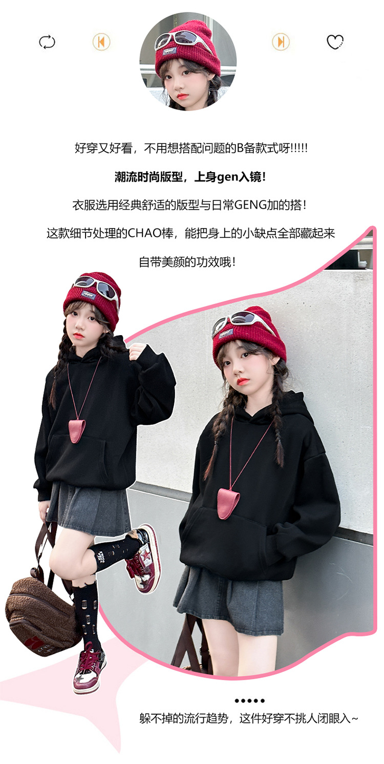 소녀들의 기모 가을과 겨울 2024 새로운 어린이 가을 옷 큰 아이들의 세련된 유행 소녀 후드 탑