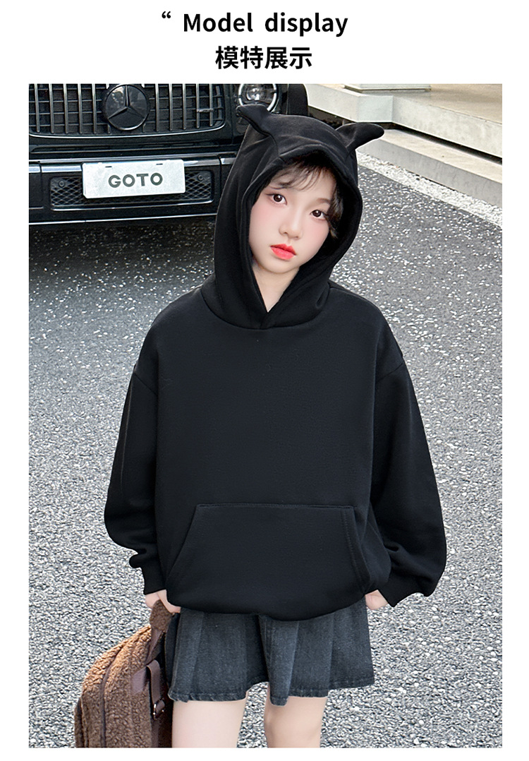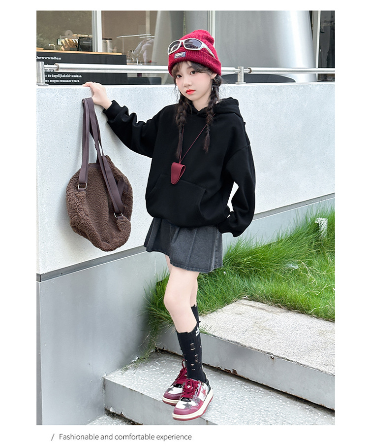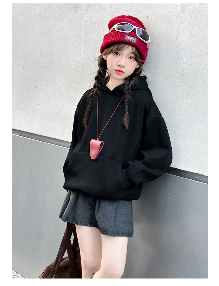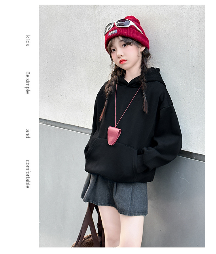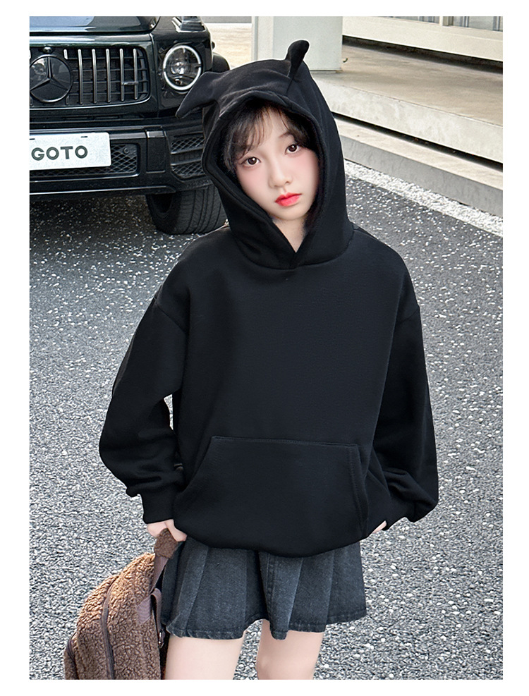 소녀들의 기모 가을과 겨울 2024 새로운 어린이 가을 옷 큰 아이들의 세련된 유행 소녀 후드 탑