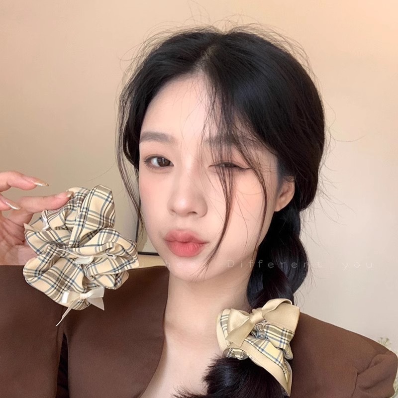 높은 아름다움 가치 기질 격자 무늬 대장 헤어 링 컬렉션 달콤한 소녀 하트 헤어 로프 바인딩 포니 테일 고무 밴드 볼 헤어 액세서리