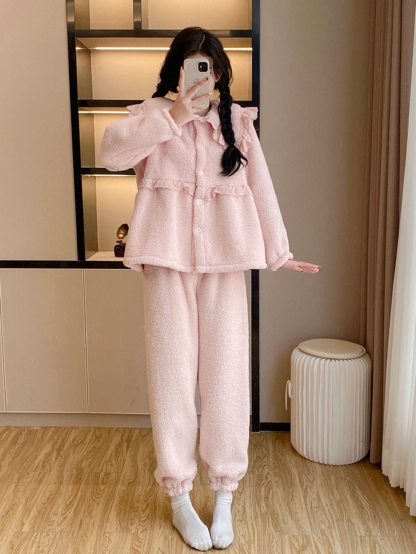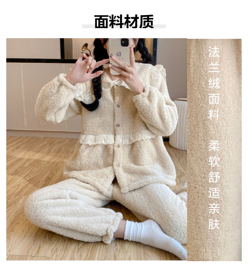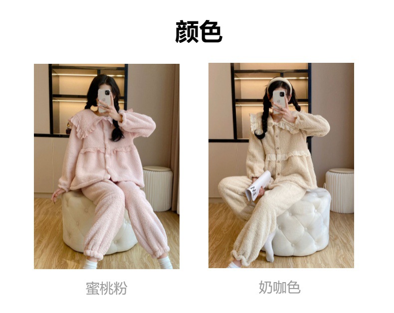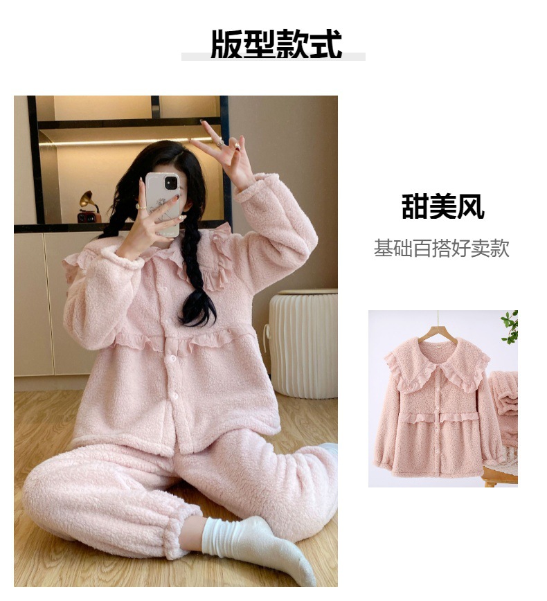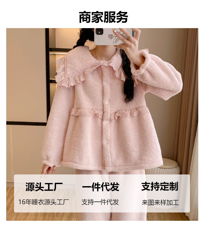 잠옷 여성용 양고기 벨벳 가을과 겨울 목 따뜻한 산호 벨벳 달콤한 대형 옷깃 두꺼운 레이스 홈 옷스토어 가기