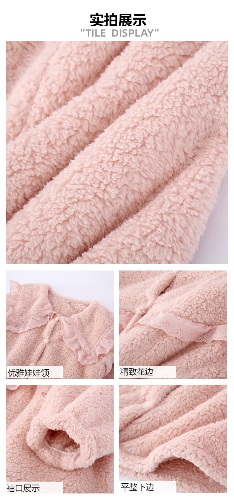 잠옷 여성용 양고기 벨벳 가을과 겨울 목 따뜻한 산호 벨벳 달콤한 대형 옷깃 두꺼운 레이스 홈 옷