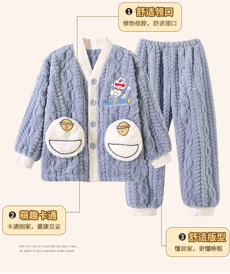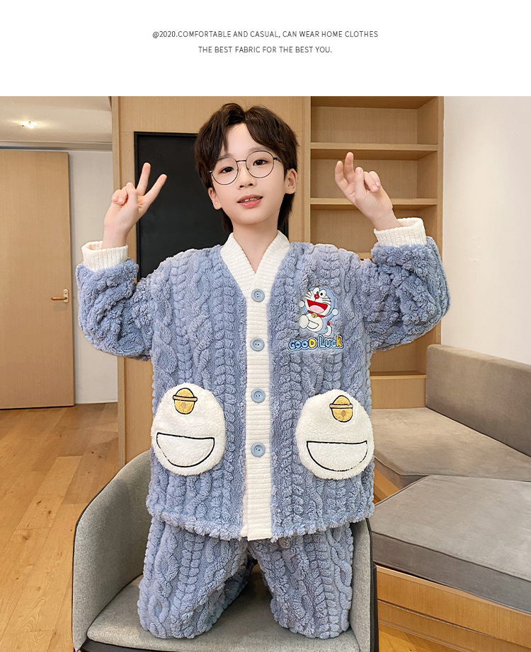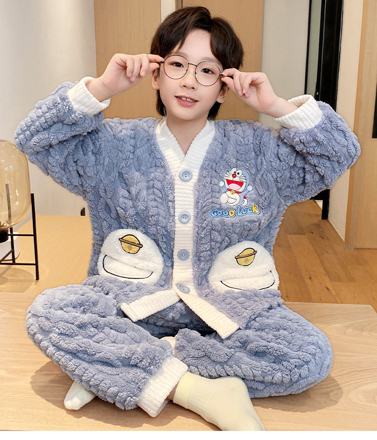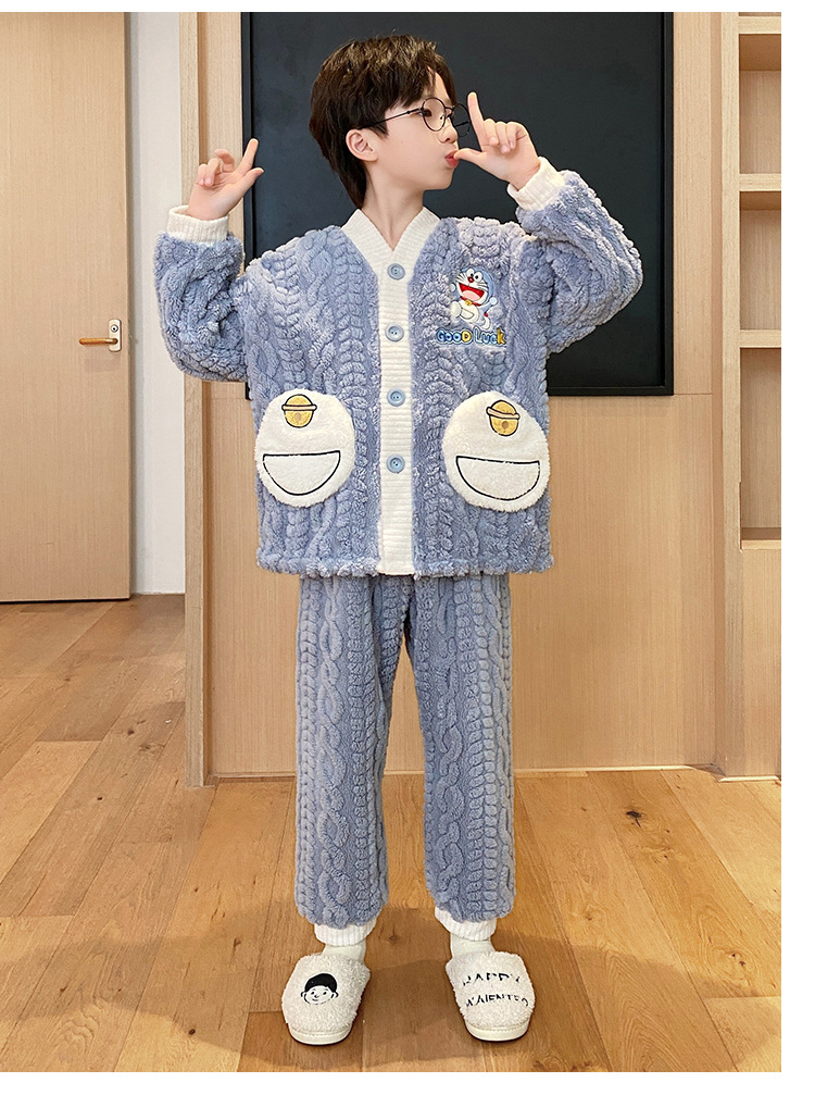 어린이 잠옷 소년 2024 가을과 겨울 플란넬 세트 두꺼운 새 산호 양털 소년 홈 의류 겨울