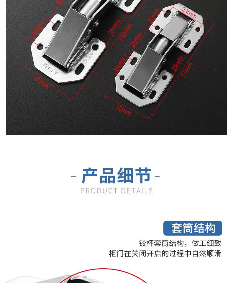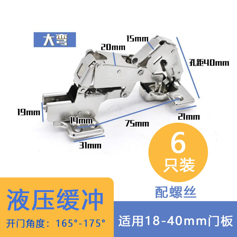 • 대형 곡선 고정 [165도 유압 버퍼]에는 나사 6개가 포함되어 있지 않습니다(18-40mm 도어 패널에 적용 가능).