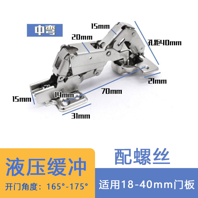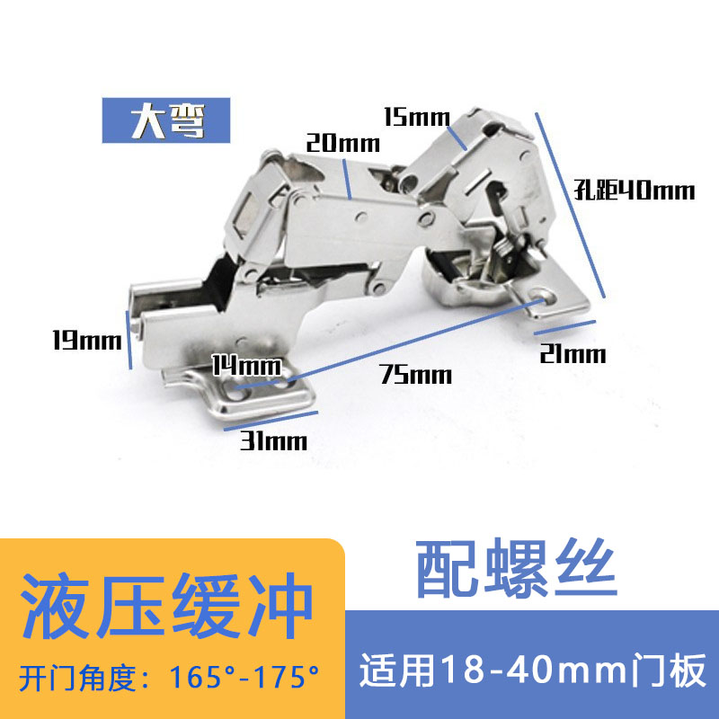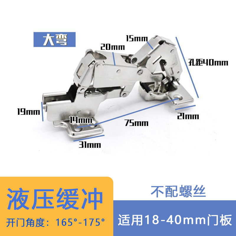 • 중간 굽힘 고정 [165도 유압 버퍼] 나사 6개 포함(18-40mm 도어 패널에 적용 가능)