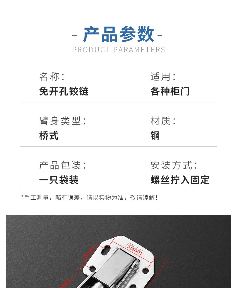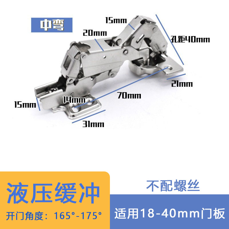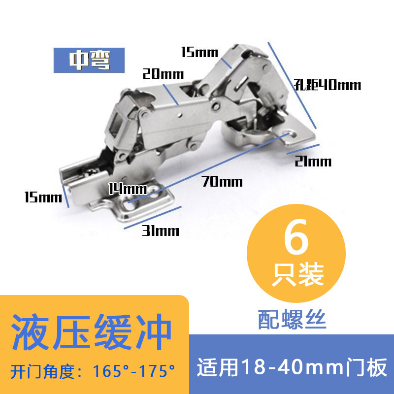• 중간 굽힘 고정 [165도 유압 버퍼]에는 나사 6개가 포함되어 있지 않습니다(18-40mm 도어 패널에 적용 가능).