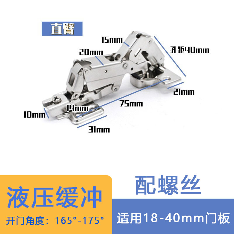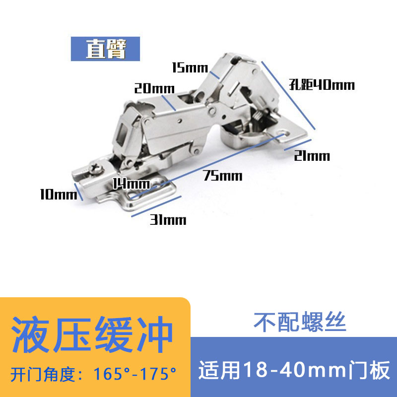 • 직선 암 고정 [165도 유압 버퍼] 나사 6개 포함(18-40mm 도어 패널에 적용 가능)