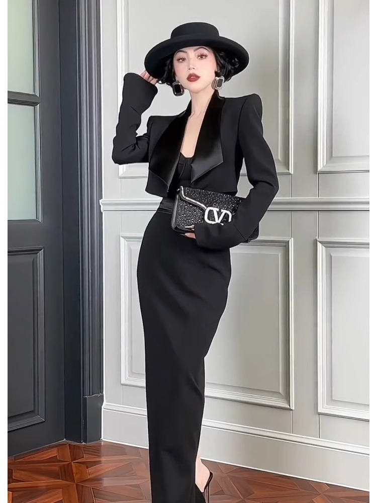 2055 기질 디자인 센스 짧은 세트 재킷 여성 가을 새 왕실 자매 기질 틈새 원피스 투피스 세트