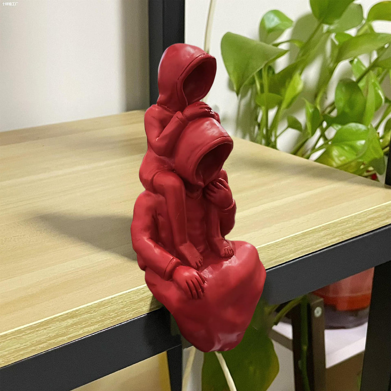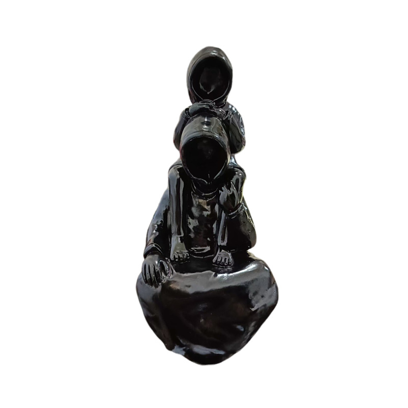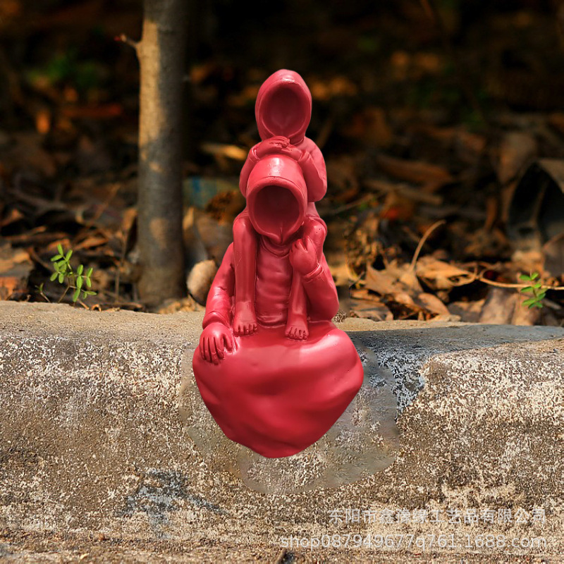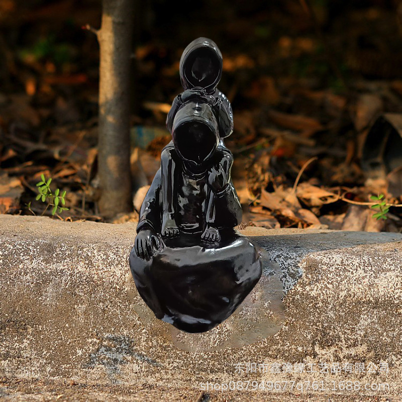 국경을 넘는 새로운 아버지와 아들 흑인 남성 수지 공예 장식품, 스릴러 검은 가운 고딕 정원 야외 장식