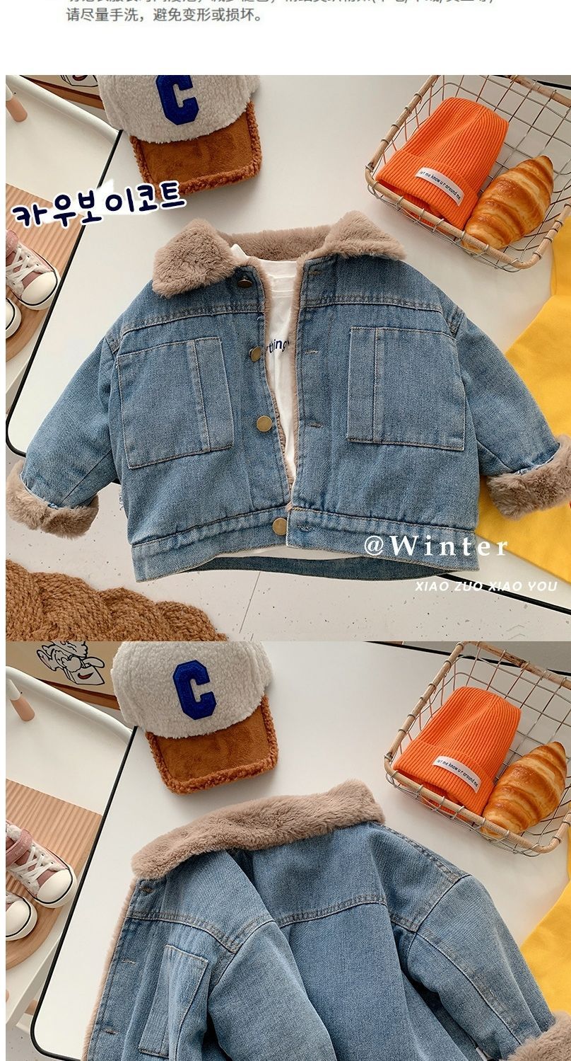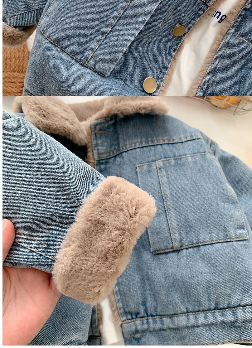 가을과 겨울 남성과 여성의 아동복 코트 아기 외국 스타일 어린이 맞춤형 세련된 한국어 버전 두꺼운 옷깃 데님 모피 칼라 재킷