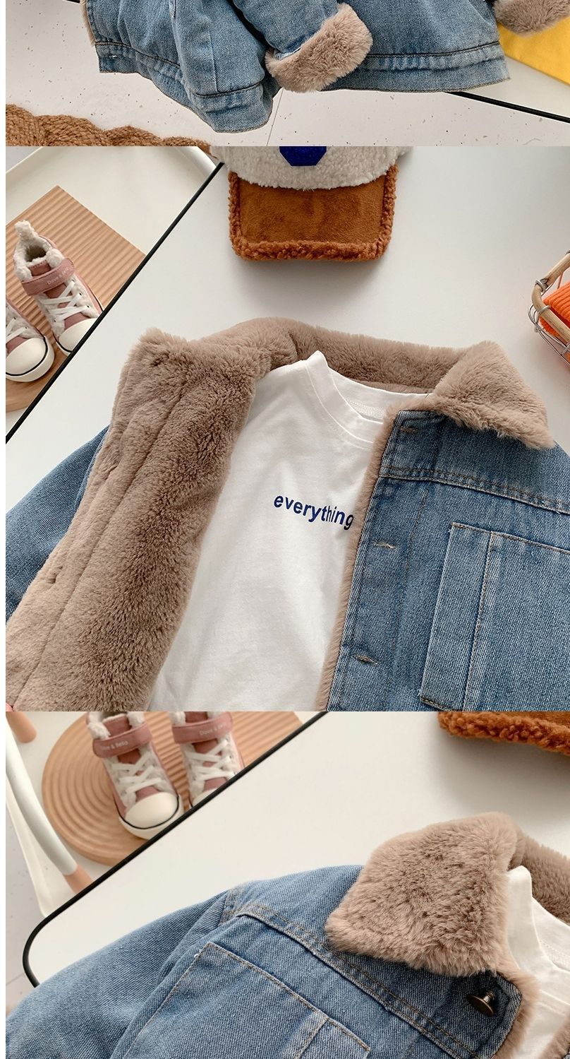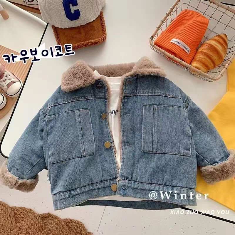 가을과 겨울 남성과 여성의 아동복 코트 아기 외국 스타일 어린이 맞춤형 세련된 한국어 버전 두꺼운 옷깃 데님 모피 칼라 재킷스토어 가기