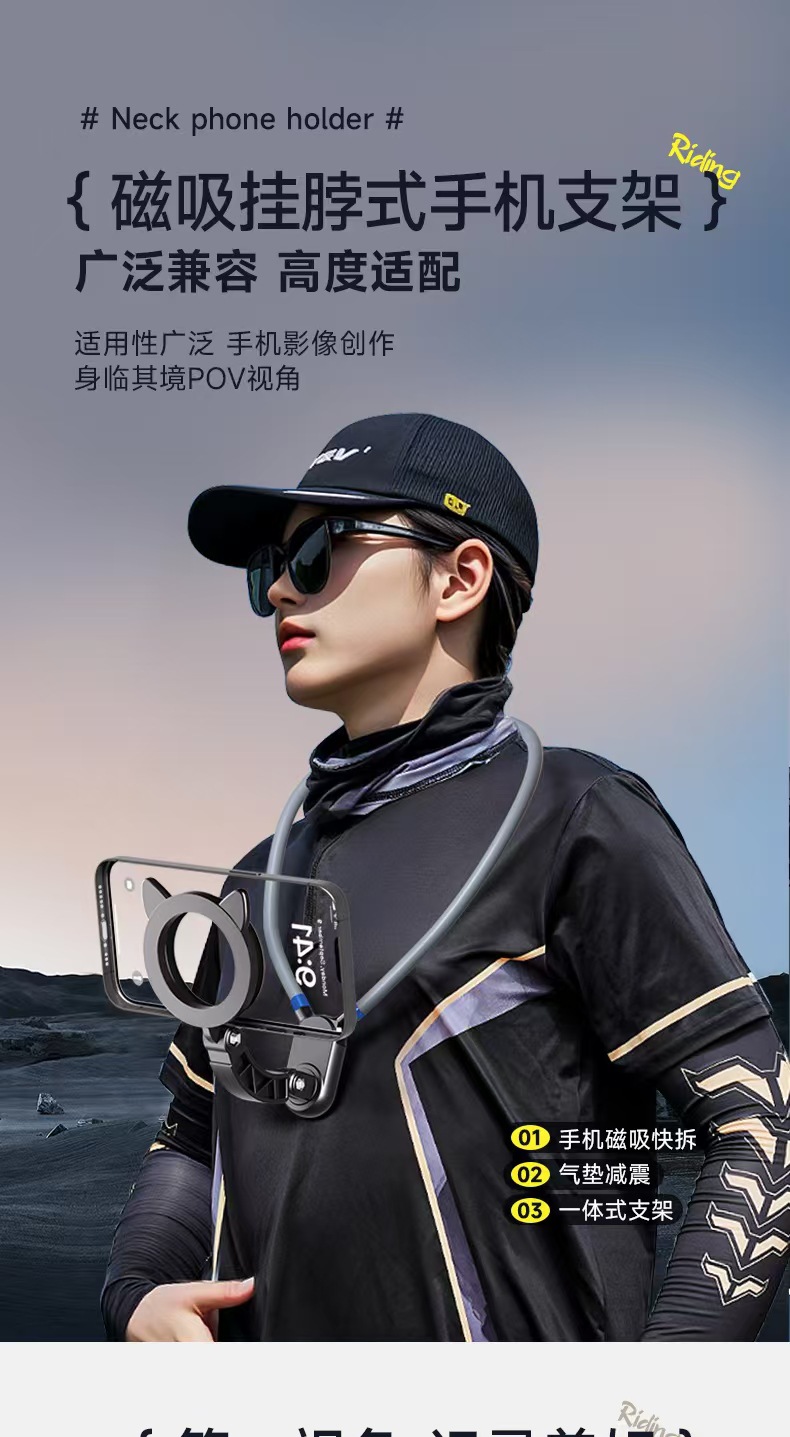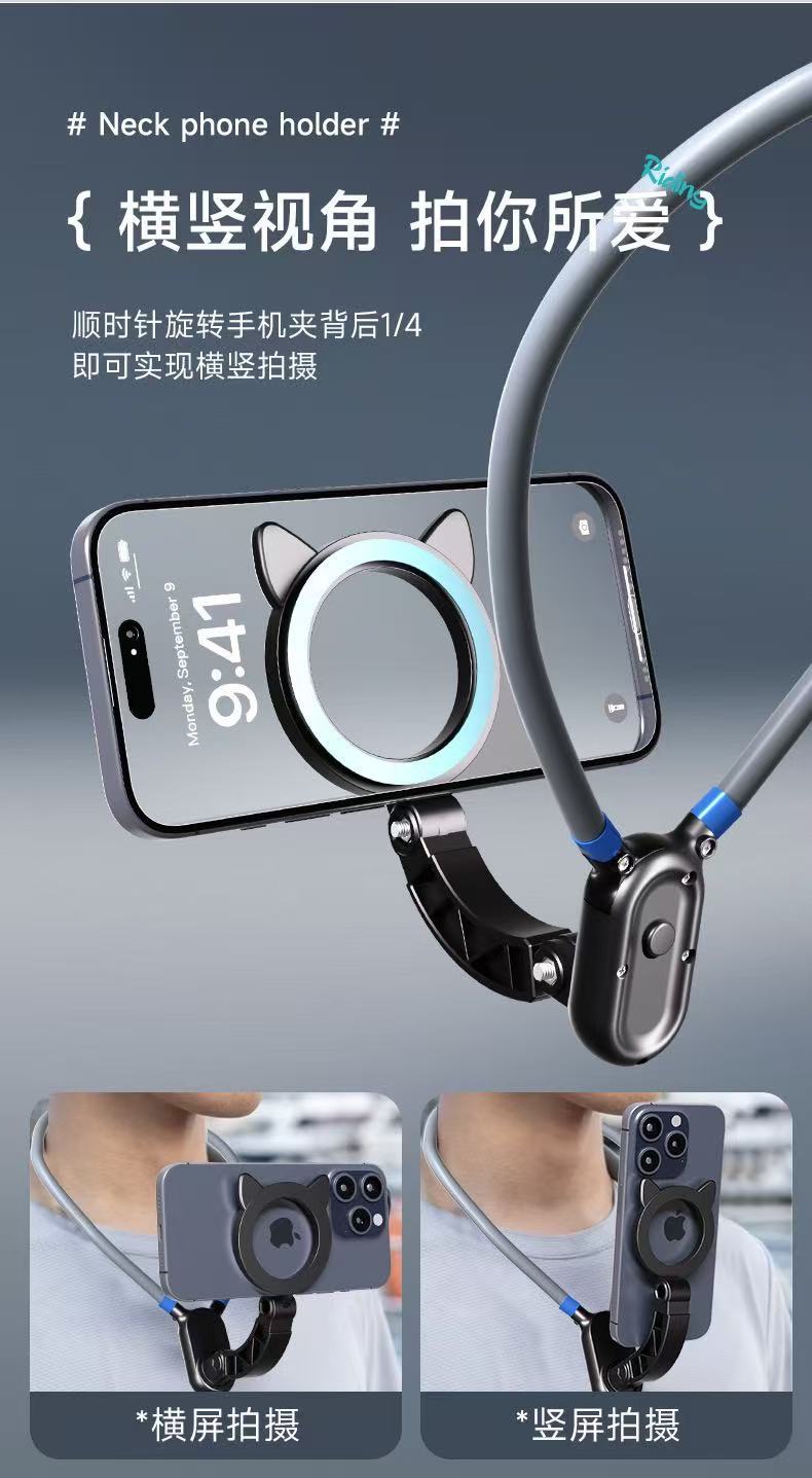라이브 방송 셀카 목걸이형 휴대폰 거치대 에어쿠션 충격흡수 자석 휴대폰 목걸이 거치대 시야각 조절 거치대.