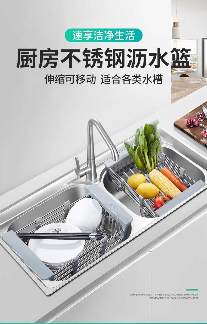 데스크탑 스토리지 랙 주방 배수 랙 다기능 개폐식 야채 분지 그릇 및 접시 저장 랙 싱크 배수 바구니