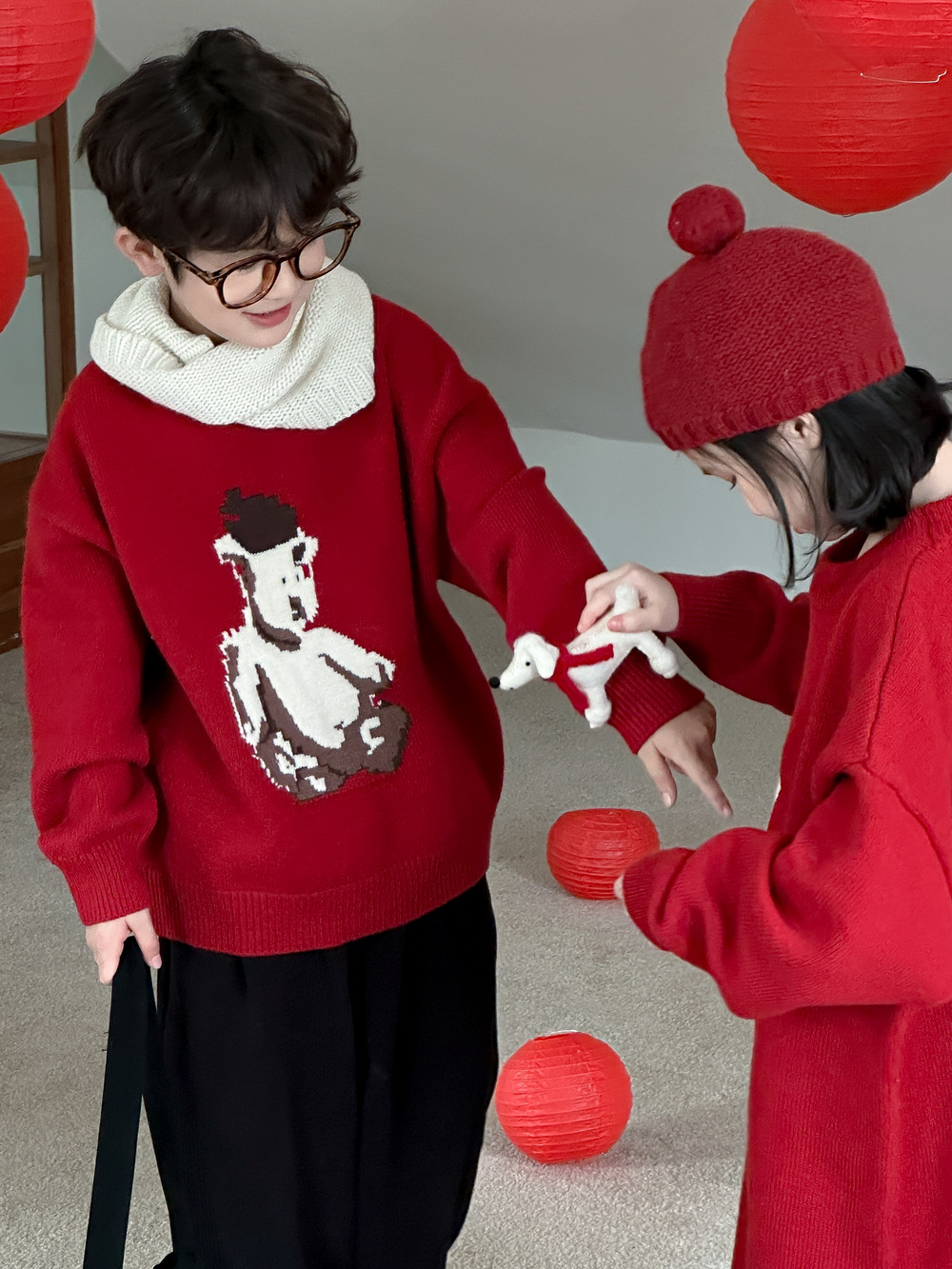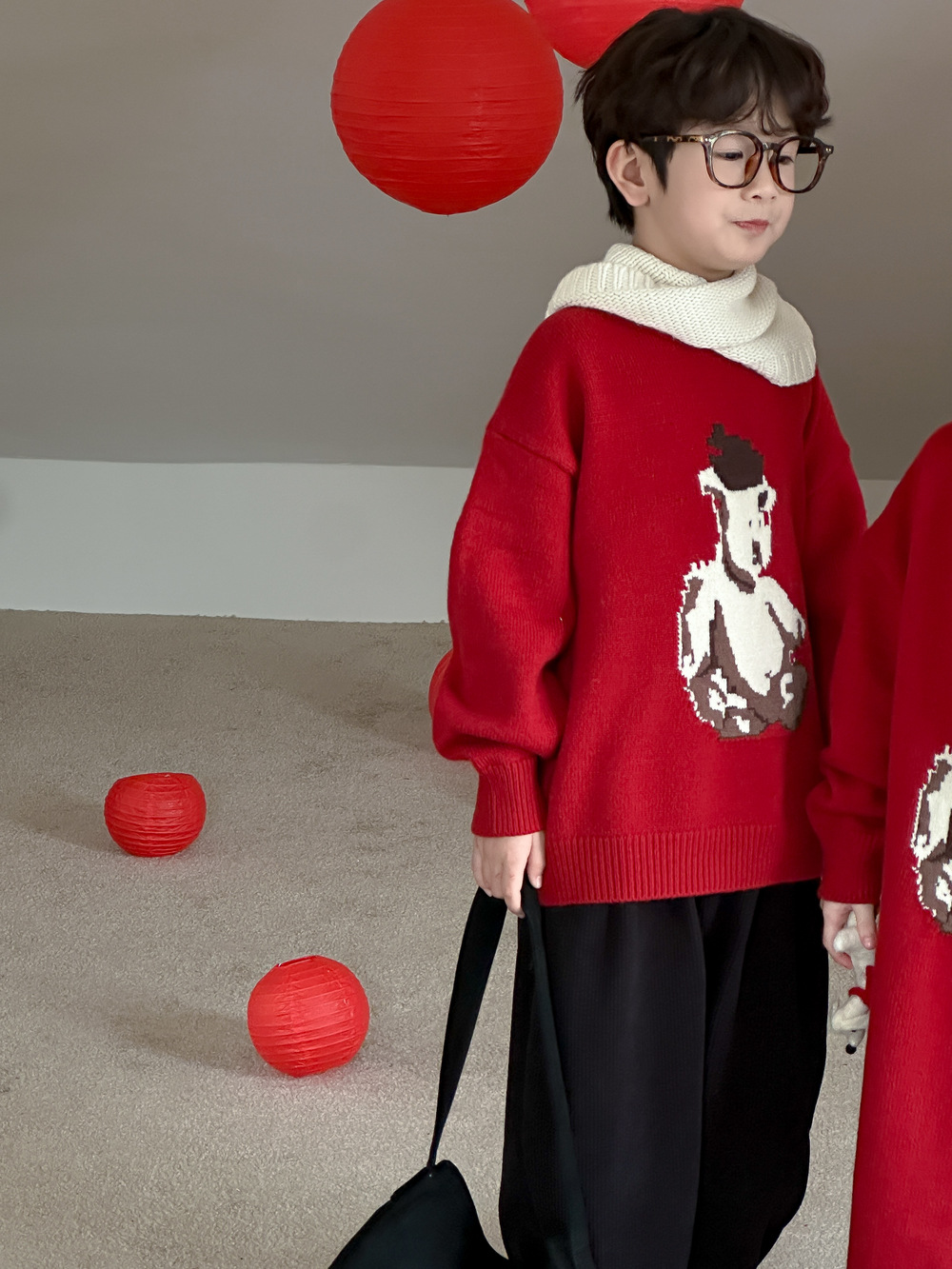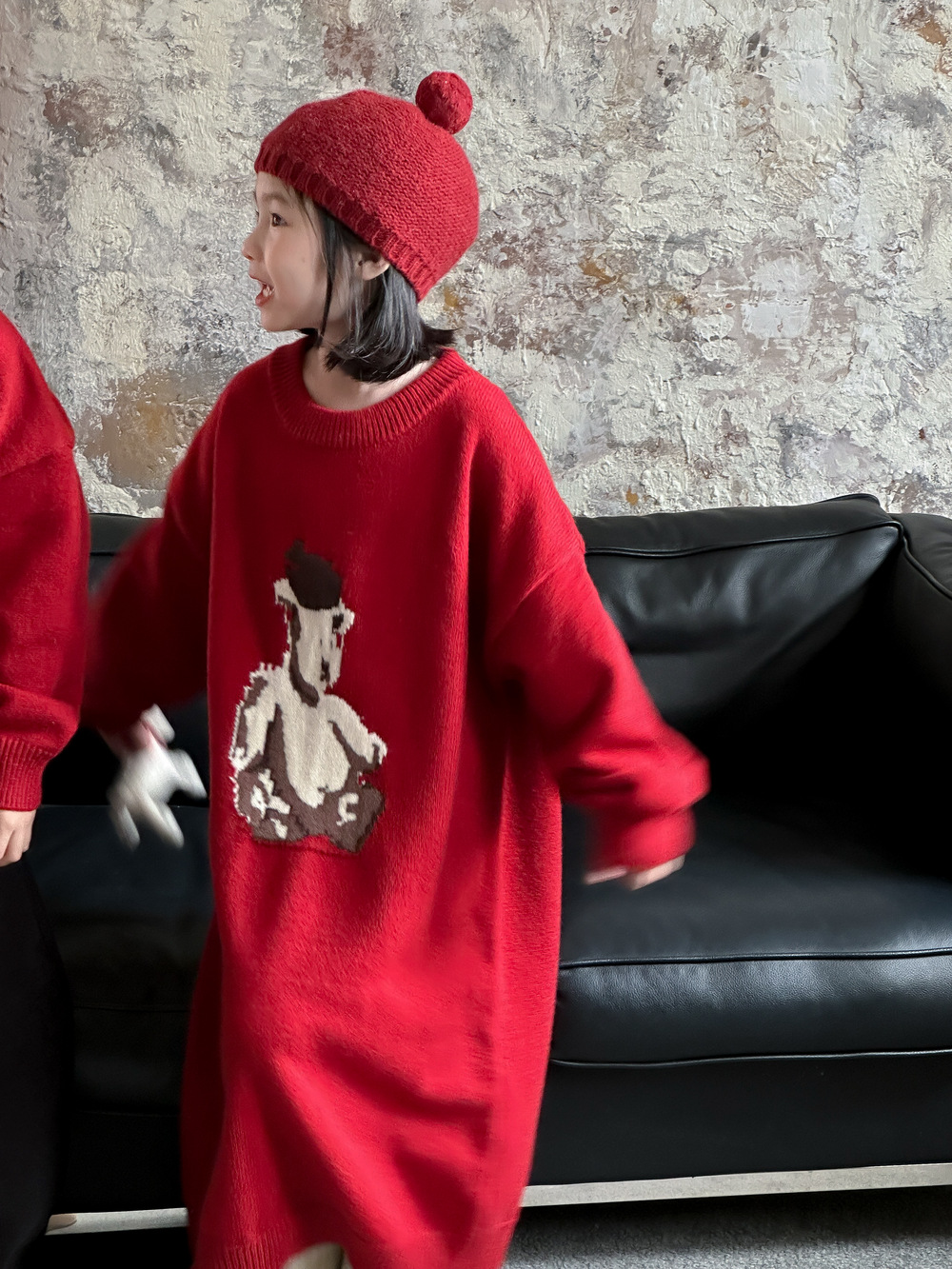 아동용 스웨터 2025 겨울 남녀 아동용 한국 스타일 곰돌이 모양 니트 상의 두꺼운 라운드넥 니트 형제자매룩 연말복스토어 가기