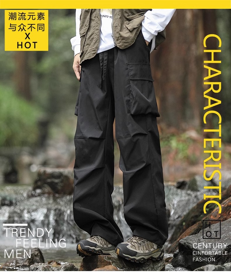 봄가을 미국식 낙하산부대 바지 여성용 방풍 방수 크로스보더 작업복 남성용 와이드 레그 스트레이트 스포츠 아웃도어 팬츠