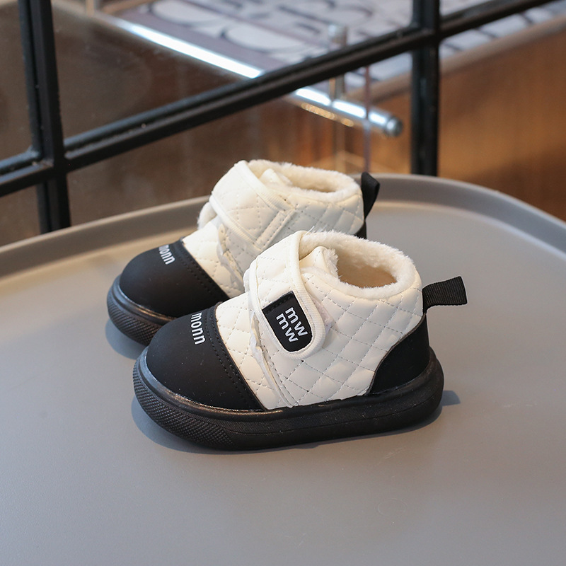 2024 겨울 소년 및 어린이 보드 신발 세련된 자동차 스티칭 기모 따뜻한 편지 패턴 아기의 작은면 신발스토어 가기