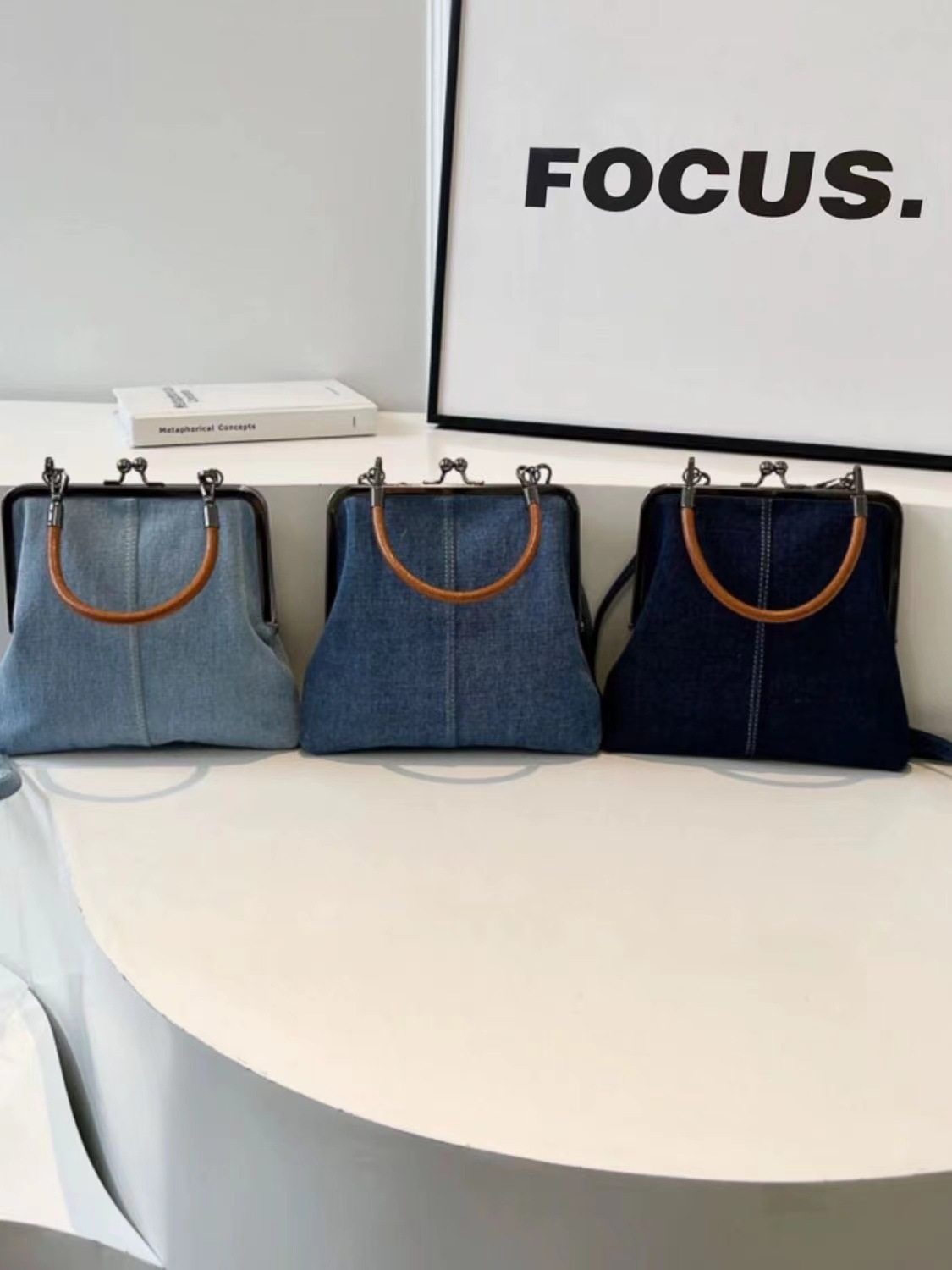 원래 새로운 2024 가을 작은 가방 여성용 가방 수제 데님 휴대용 크로스 바디 가방 어깨 가방 작은 사첼스토어 가기
