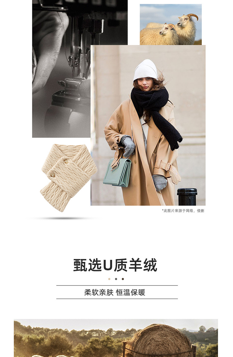 캐시미어 작은 스카프 여자 남자 가을 겨울 2024 새로운 따뜻한 두꺼운 작은 십자가 목 세트 거짓 칼라스토어 가기