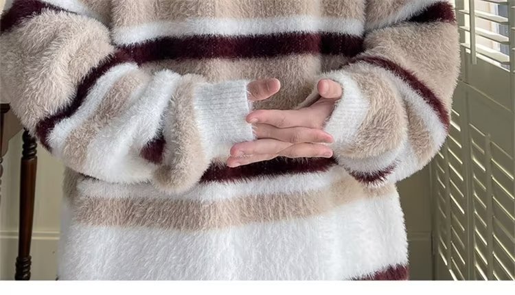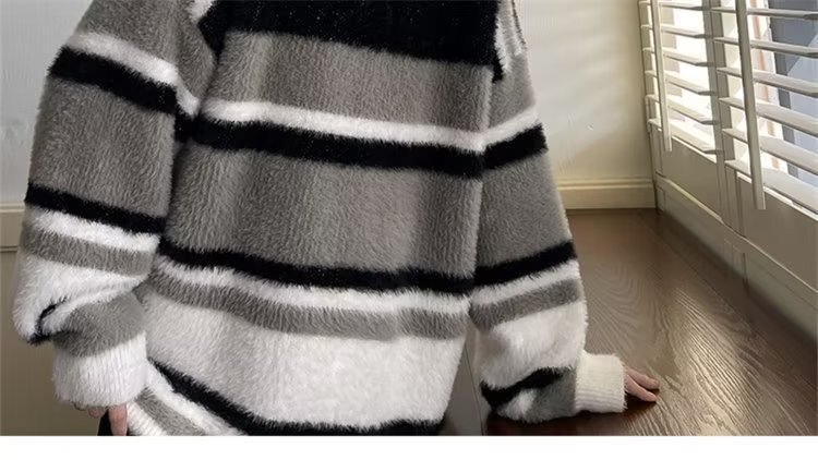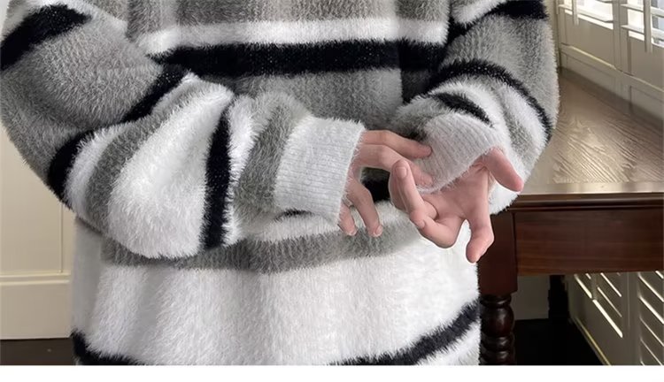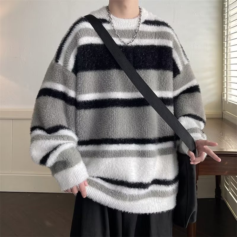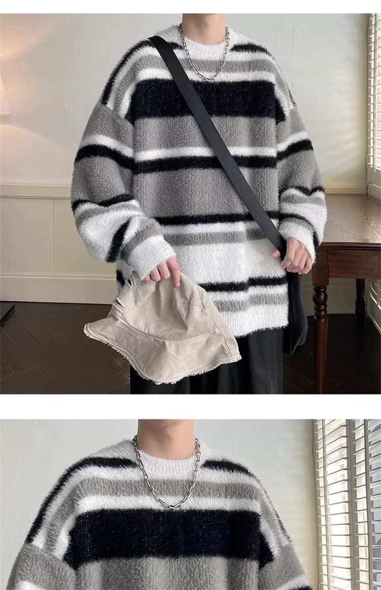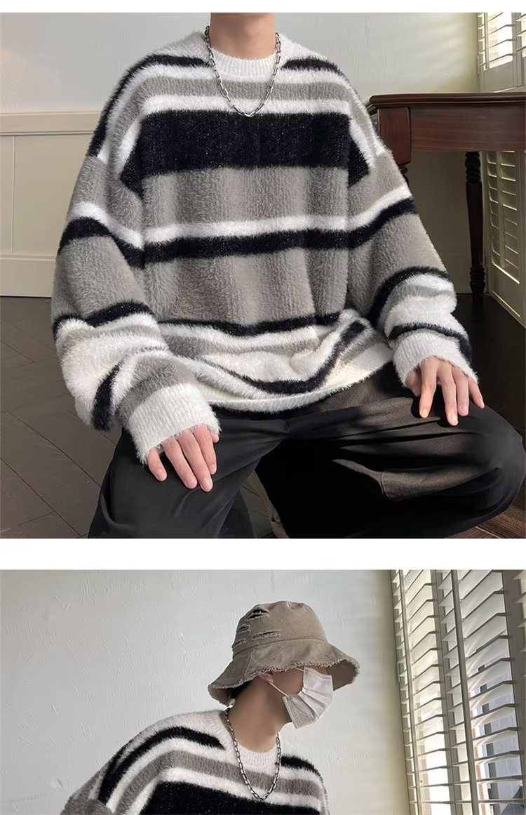 스트라이프 콘트라스트 컬러 바다 말 울 스웨터 남자 가을 겨울 일본 스타일 레트로 게으른 스타일 무거운 스웨터 트렌디스토어 가기